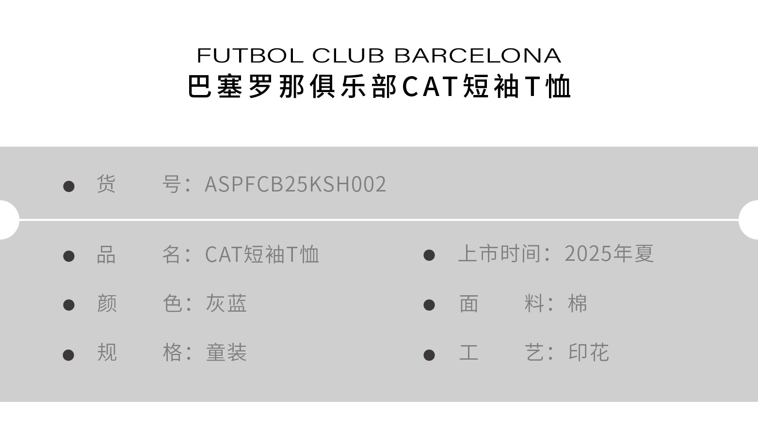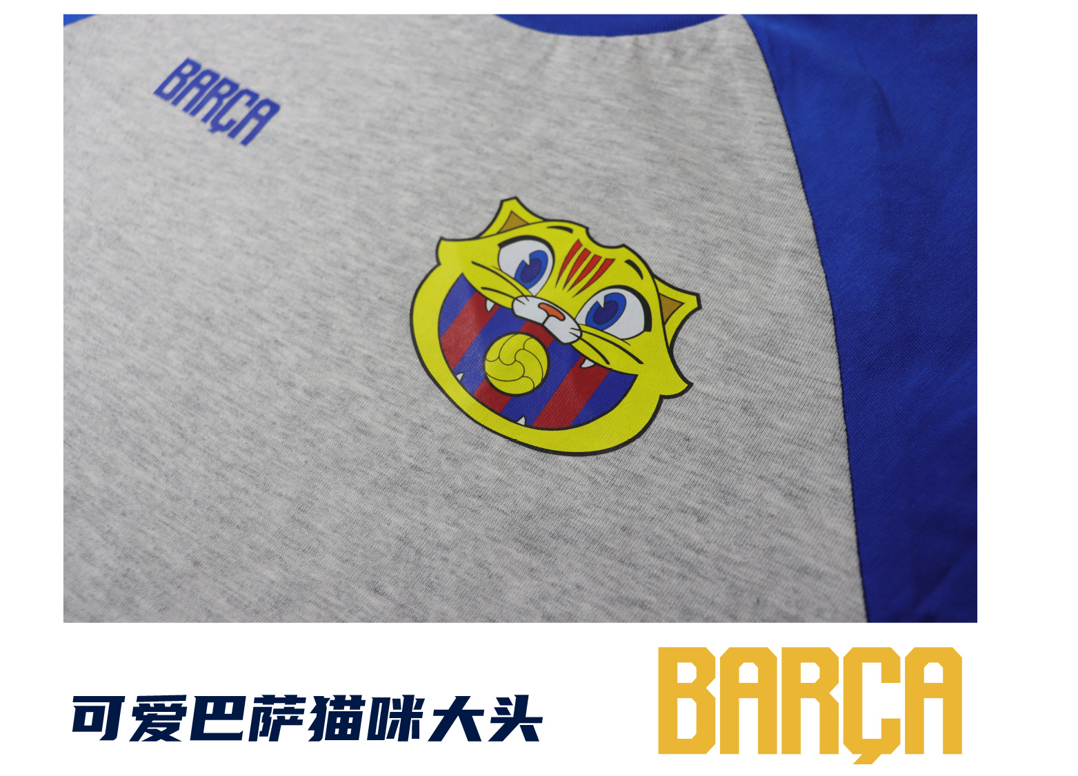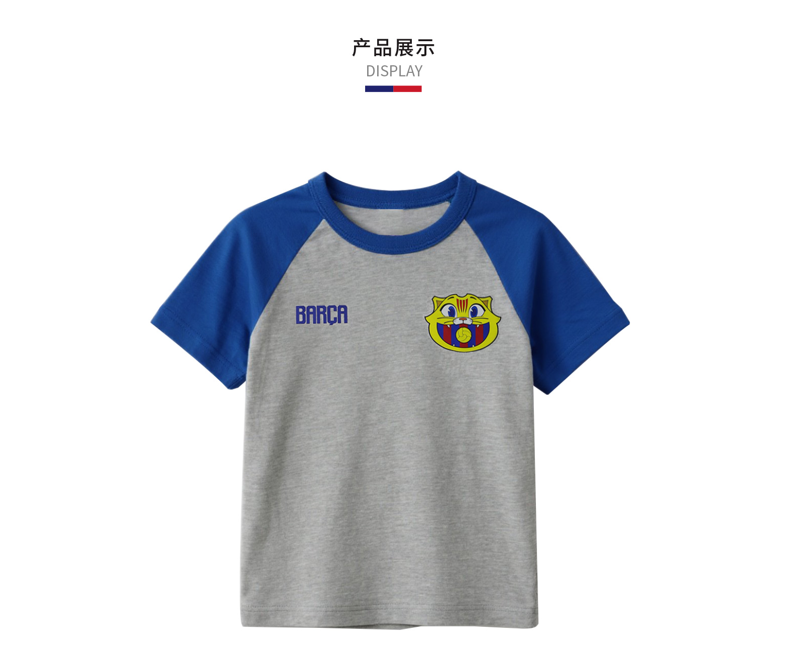 【官方正版】巴塞罗那俱乐部|巴萨CAT短袖灰蓝拼色儿童棉质T恤