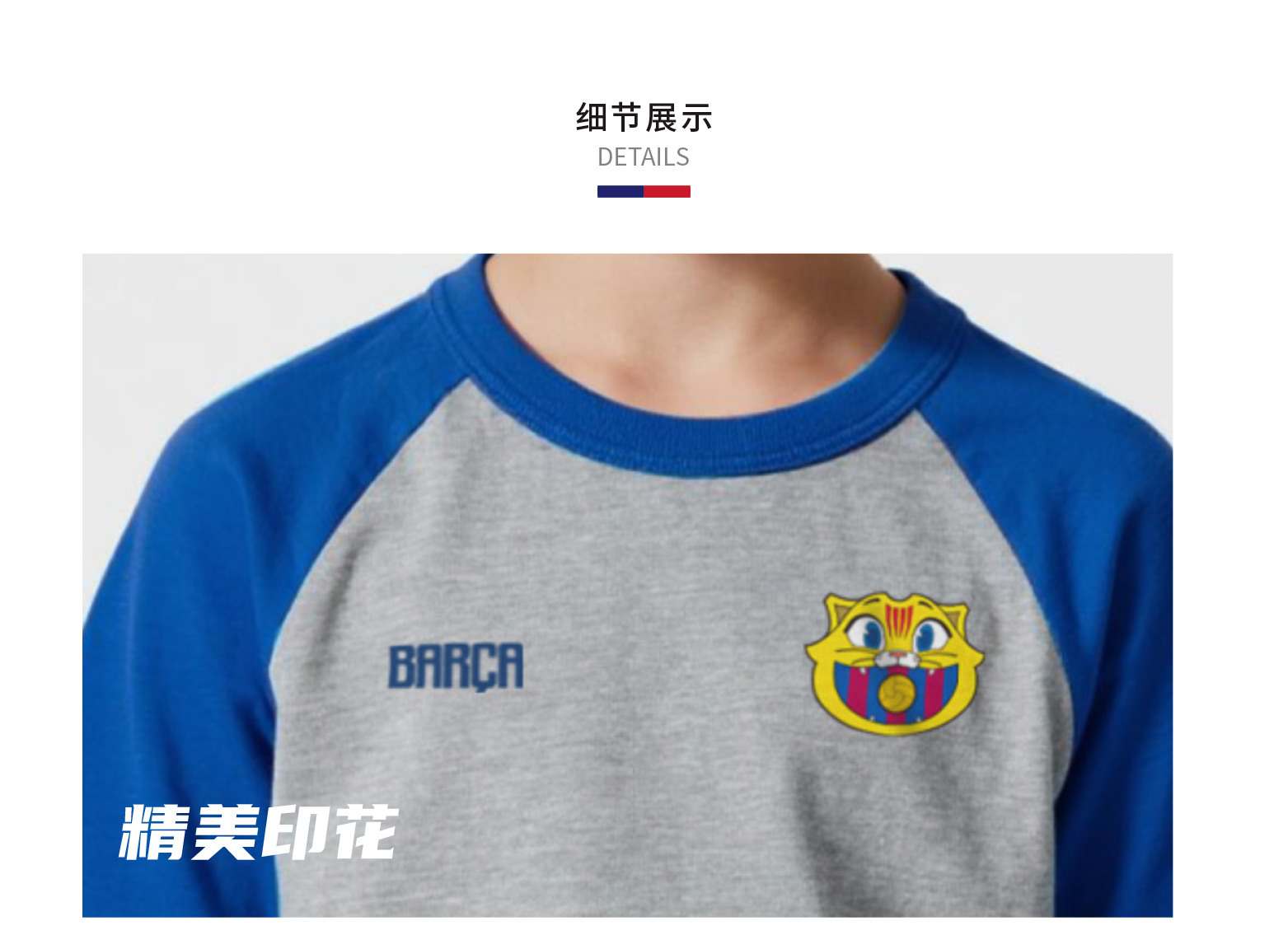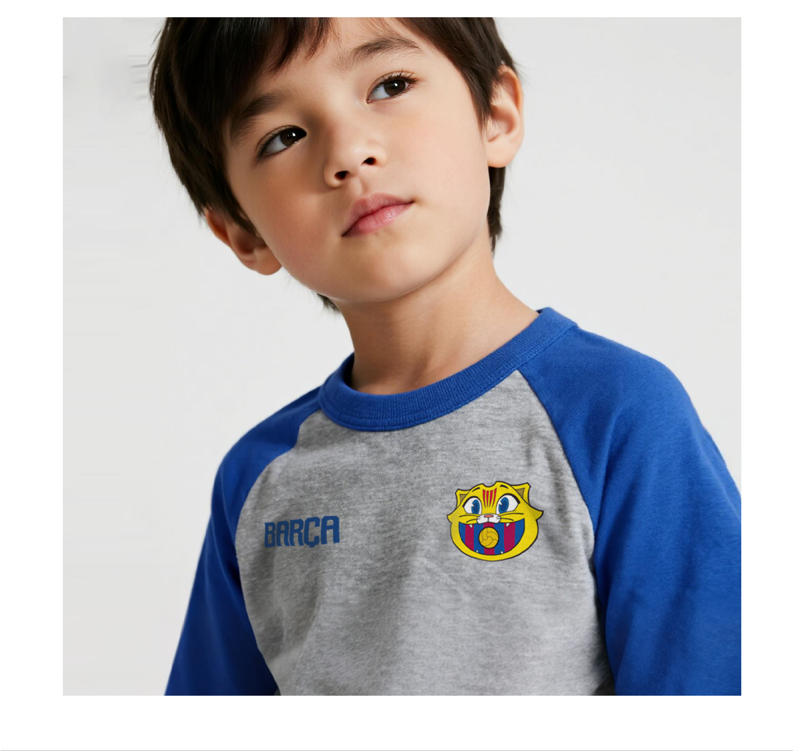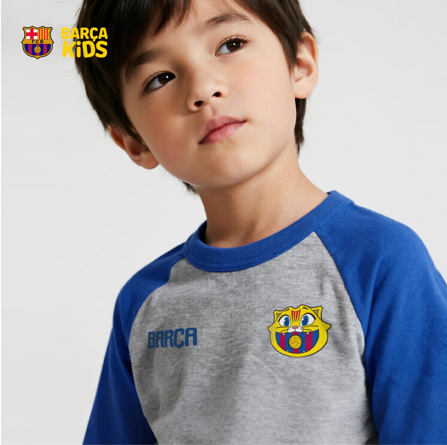 【官方正版】巴塞罗那俱乐部|巴萨CAT短袖灰蓝拼色儿童棉质T恤