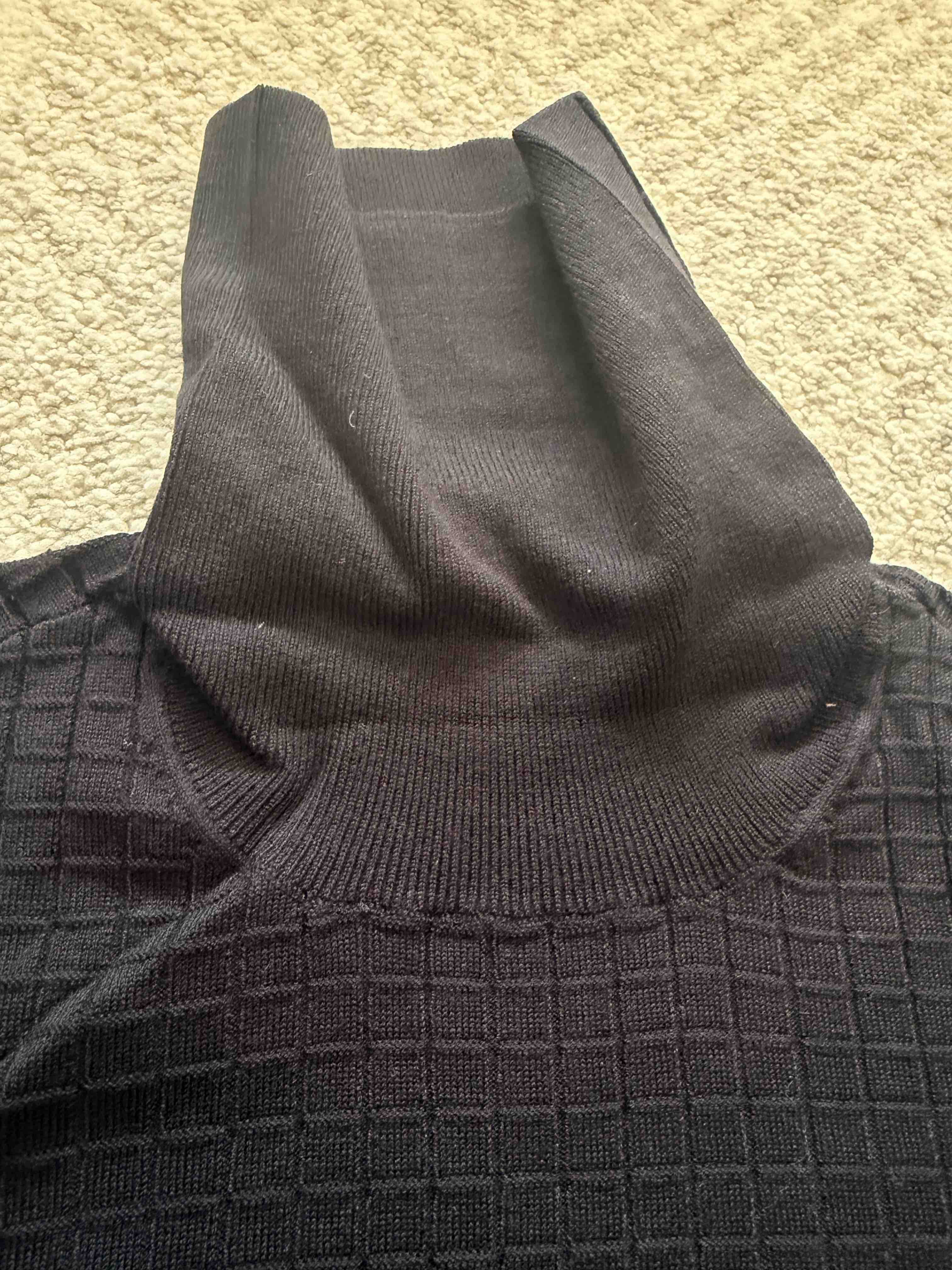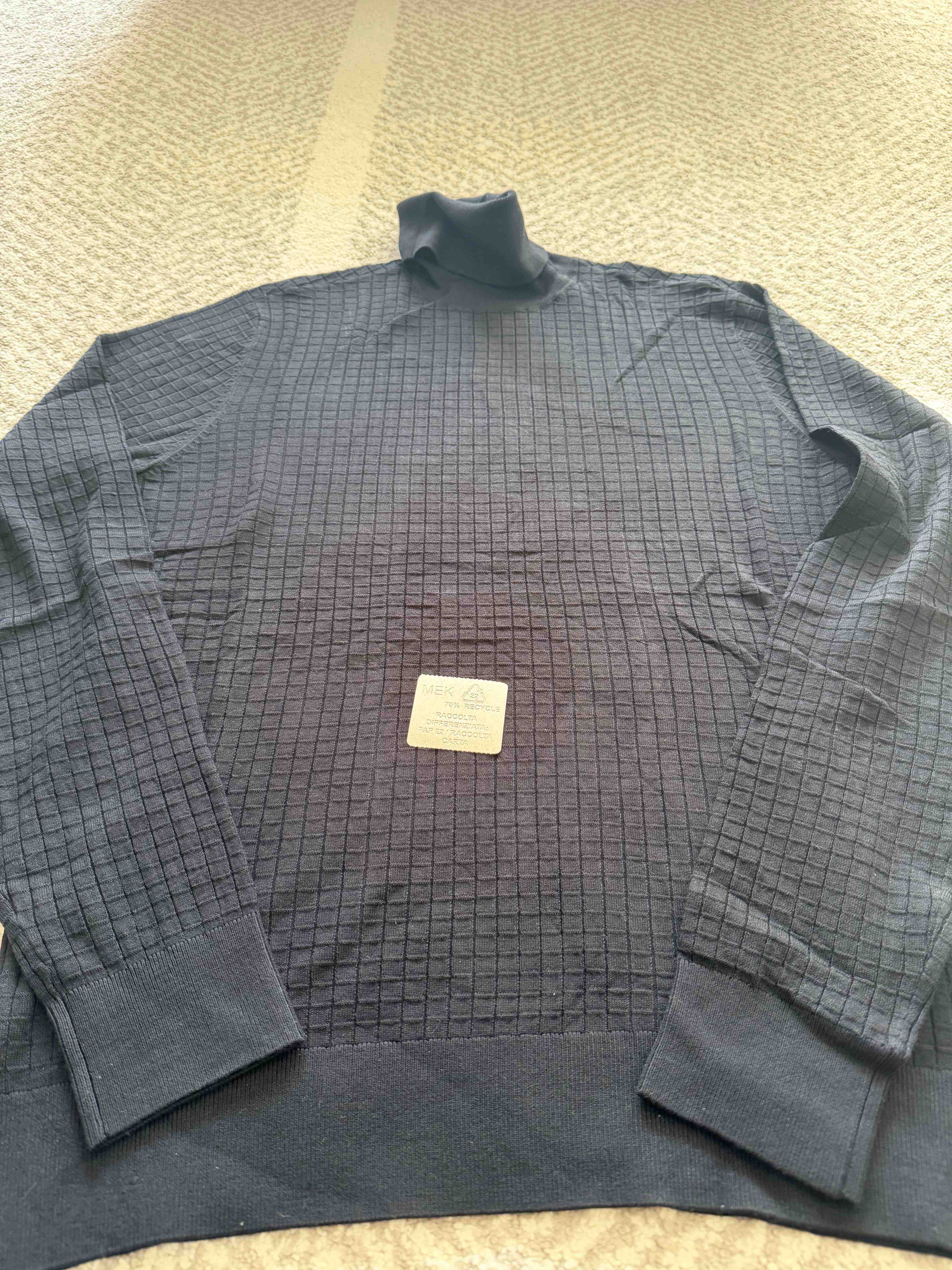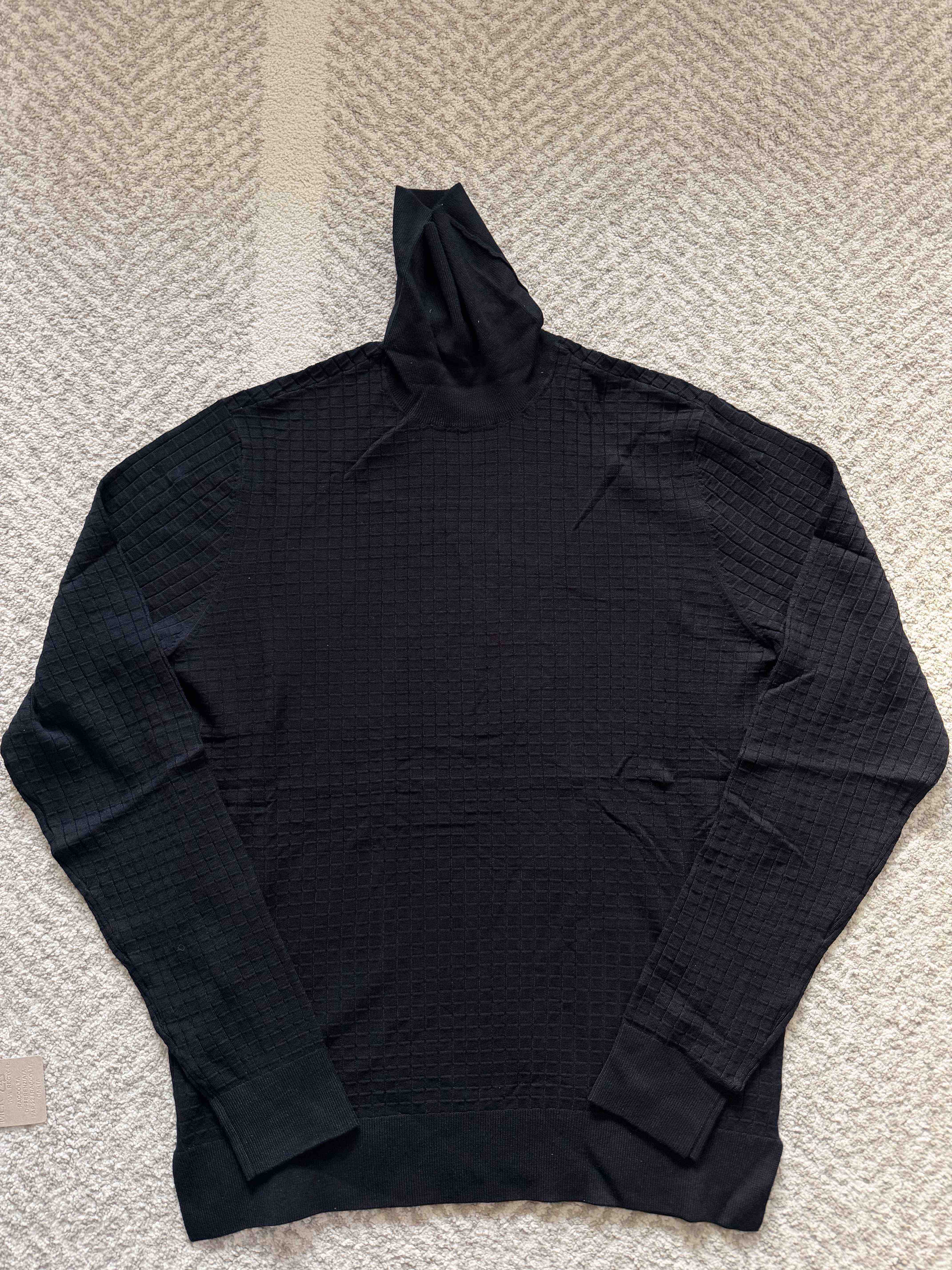 说明:全新正品Emporio Armani阿玛尼EA高领针织衫。华夫格压花提花,老钱风。全身无Logo,低调奢华。非羊毛材质,高端款,正价2k以上。有分量,沉甸甸的手感。下摆有分叉设计。单穿,或者外搭夹克大衣西服都是极帅的。