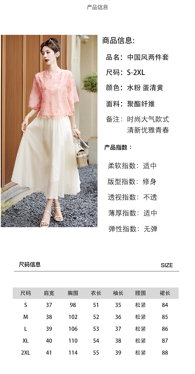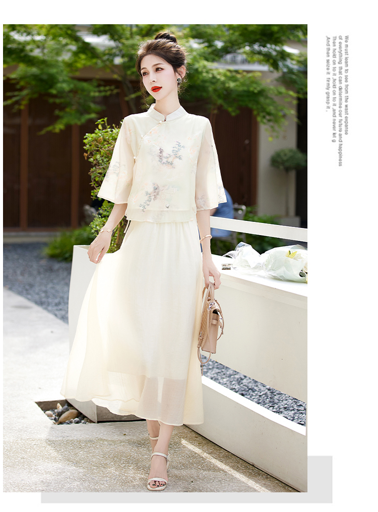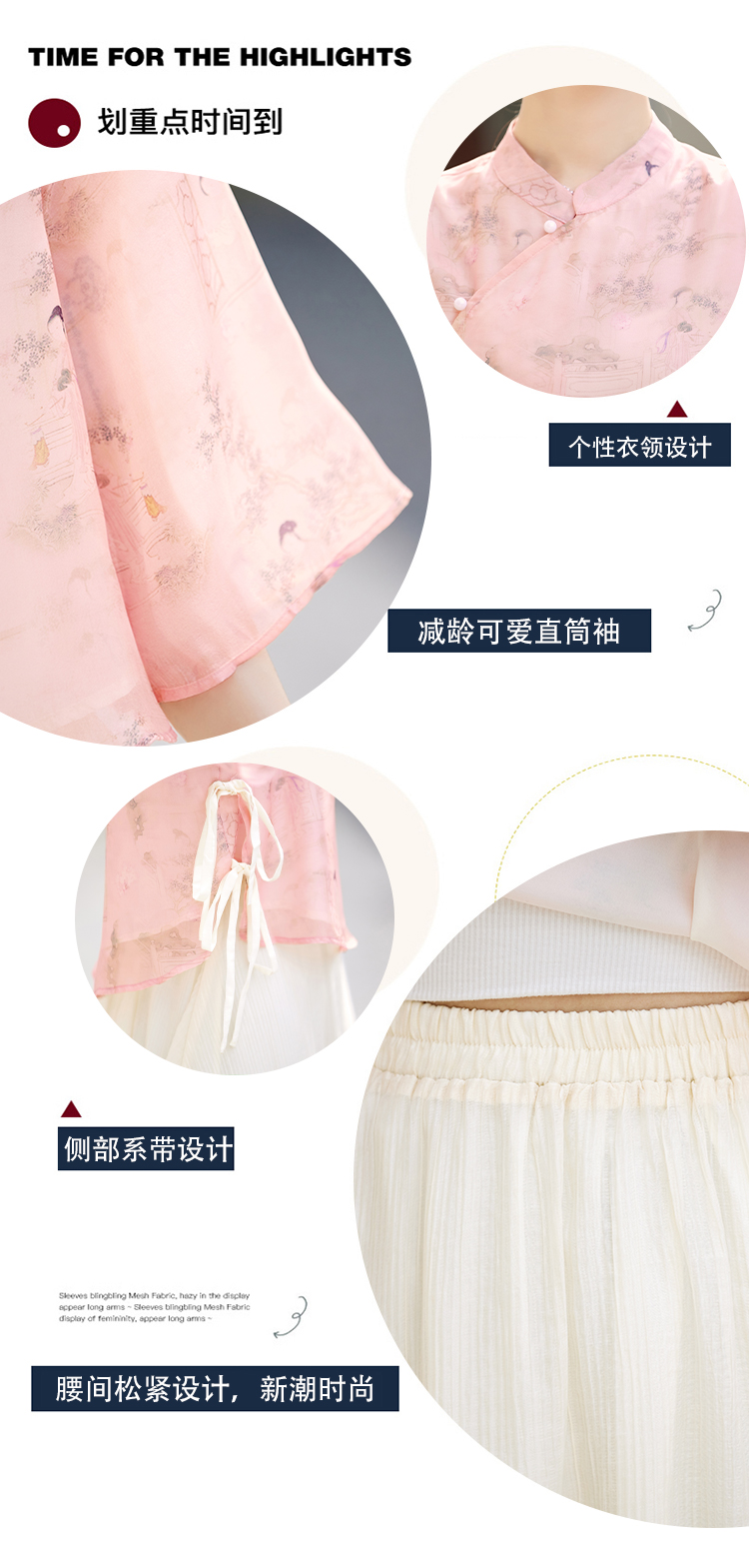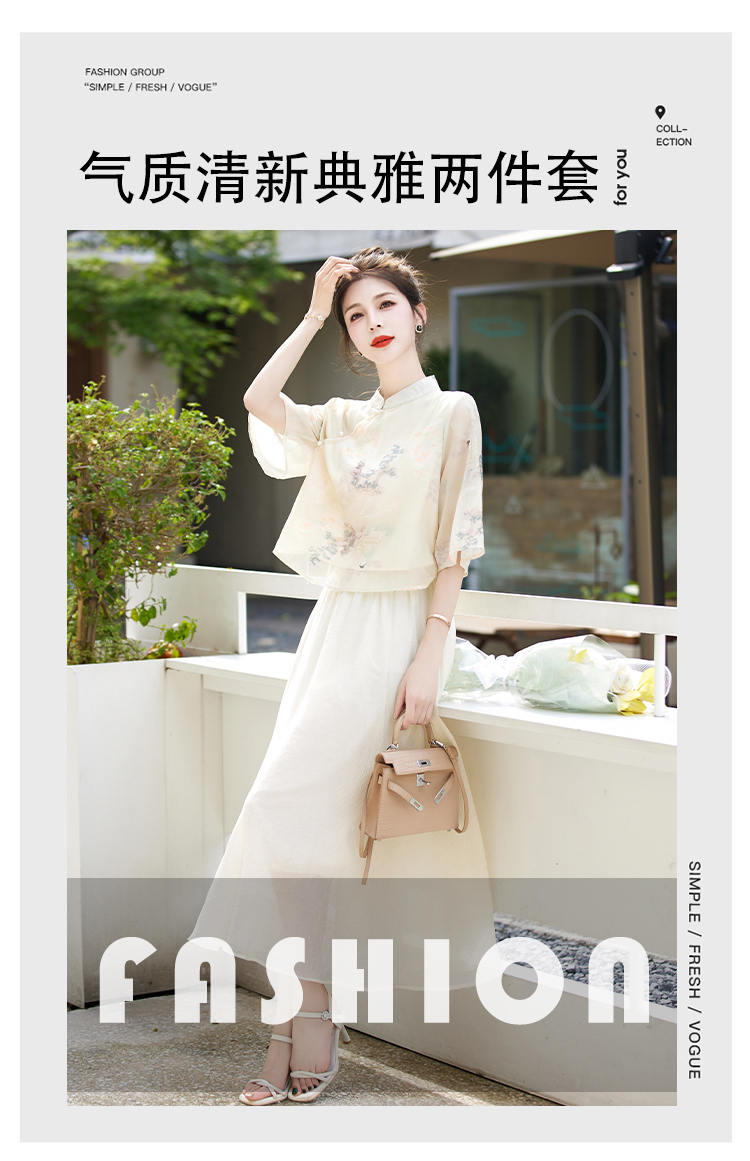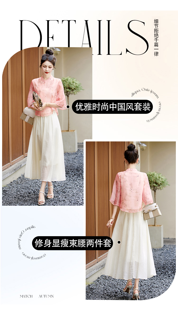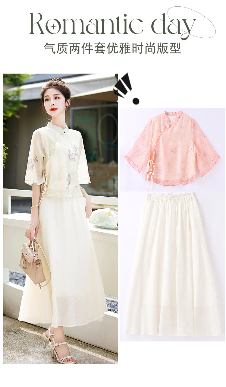 气质清新,改良旗袍夏季新中式套装女气质复古风上衣半身裙两件套连衣裙HR-BBL2323