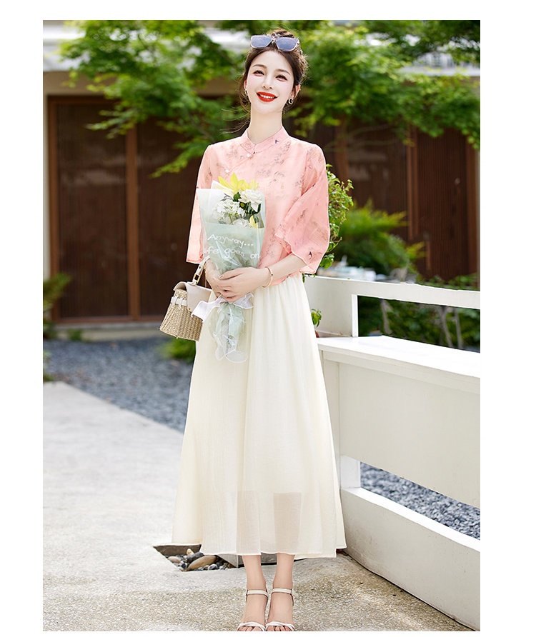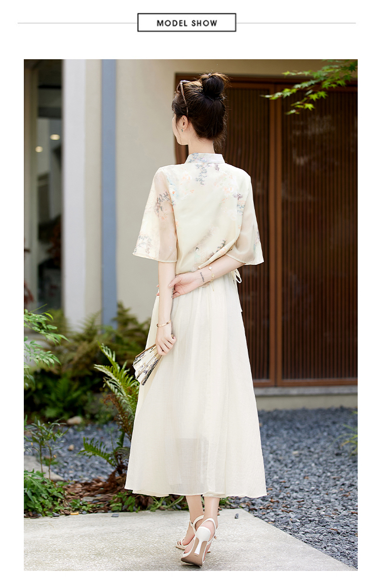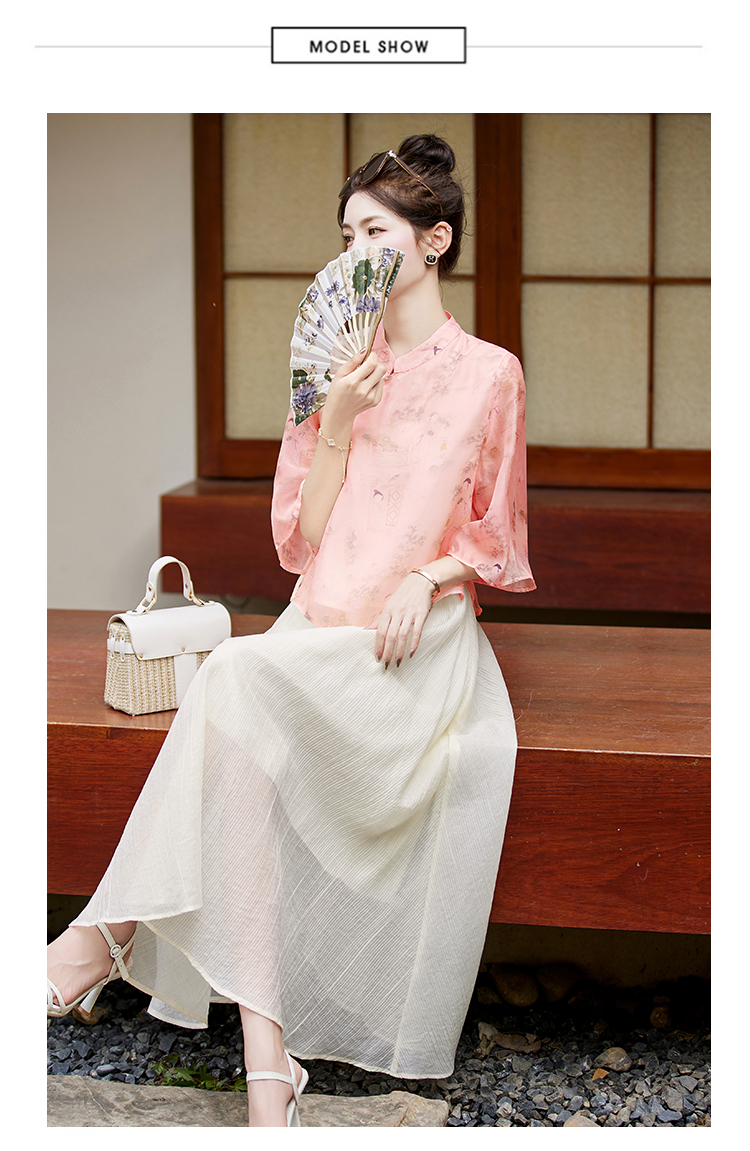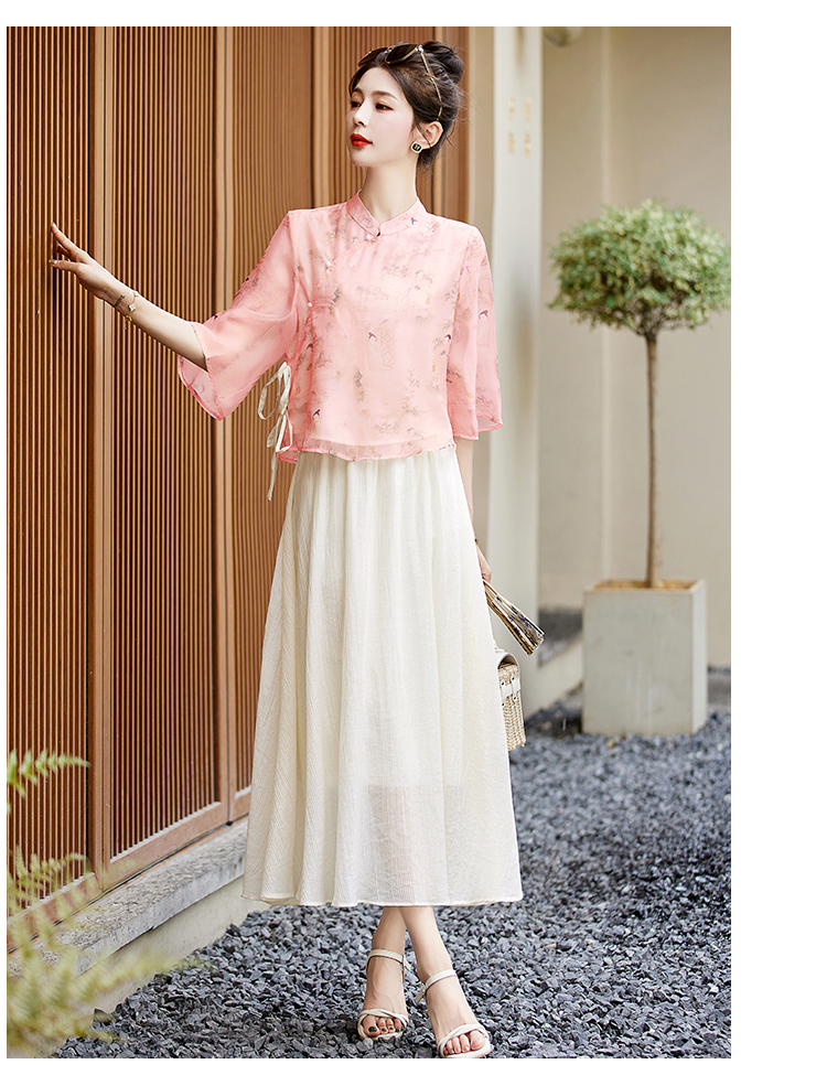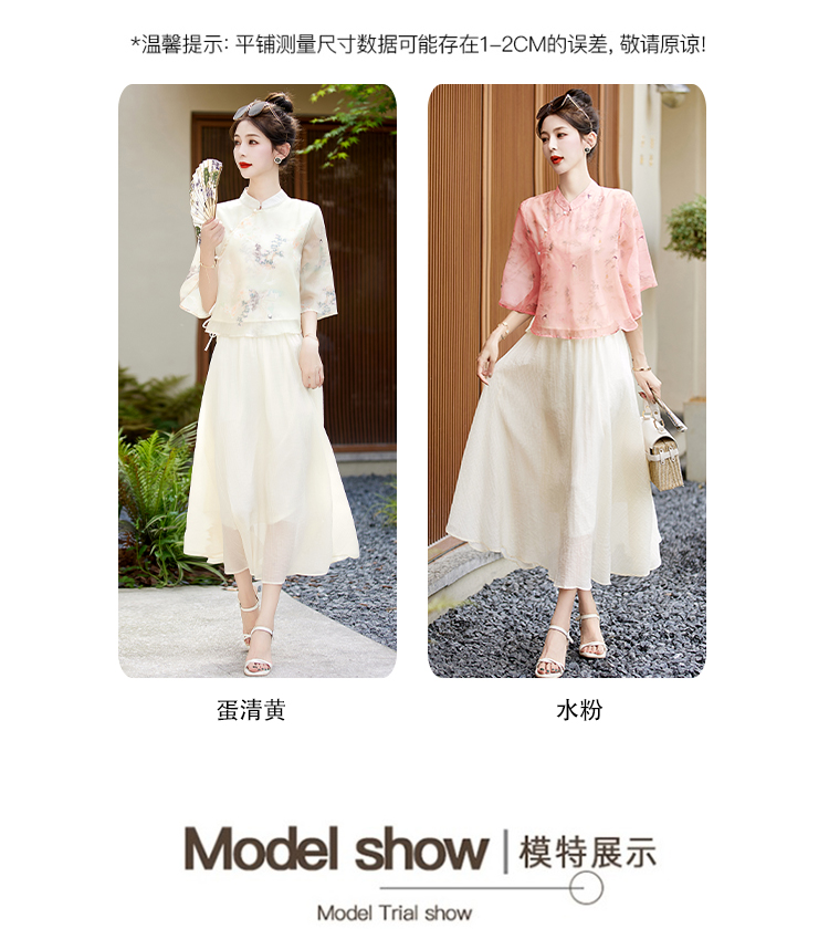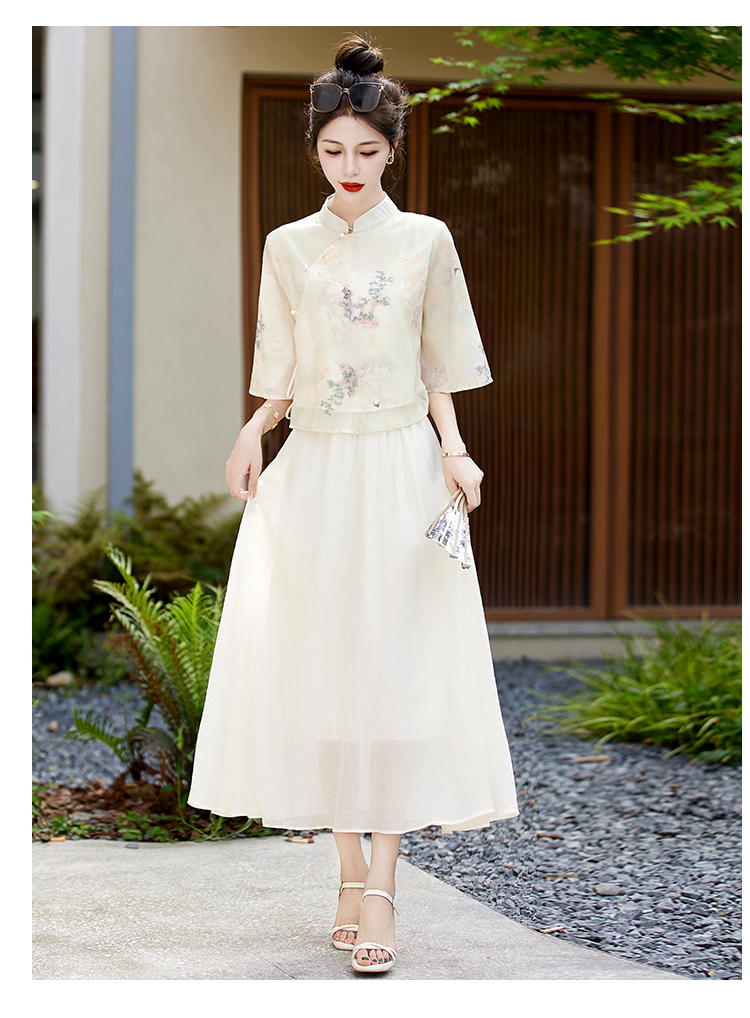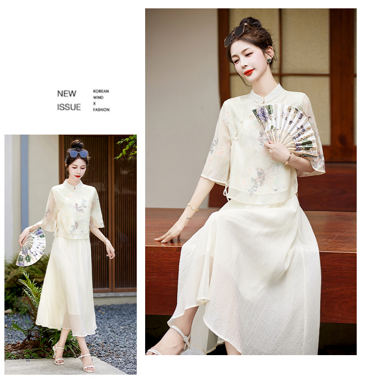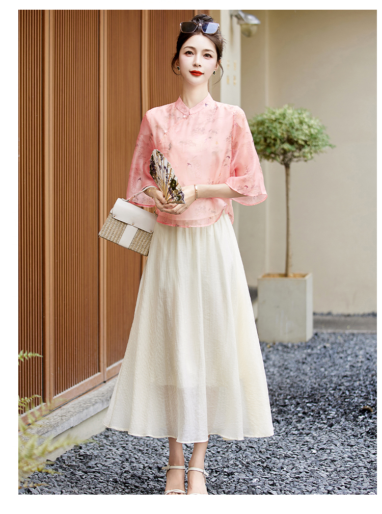 气质清新,改良旗袍夏季新中式套装女气质复古风上衣半身裙两件套连衣裙HR-BBL2323
