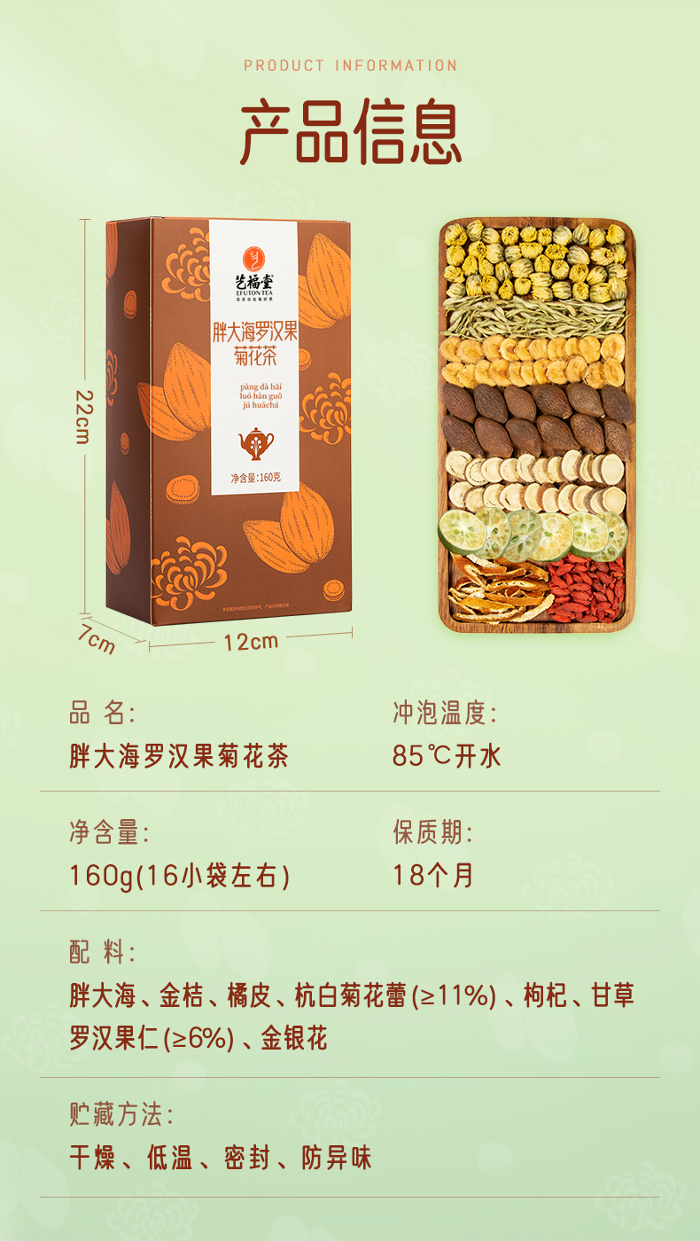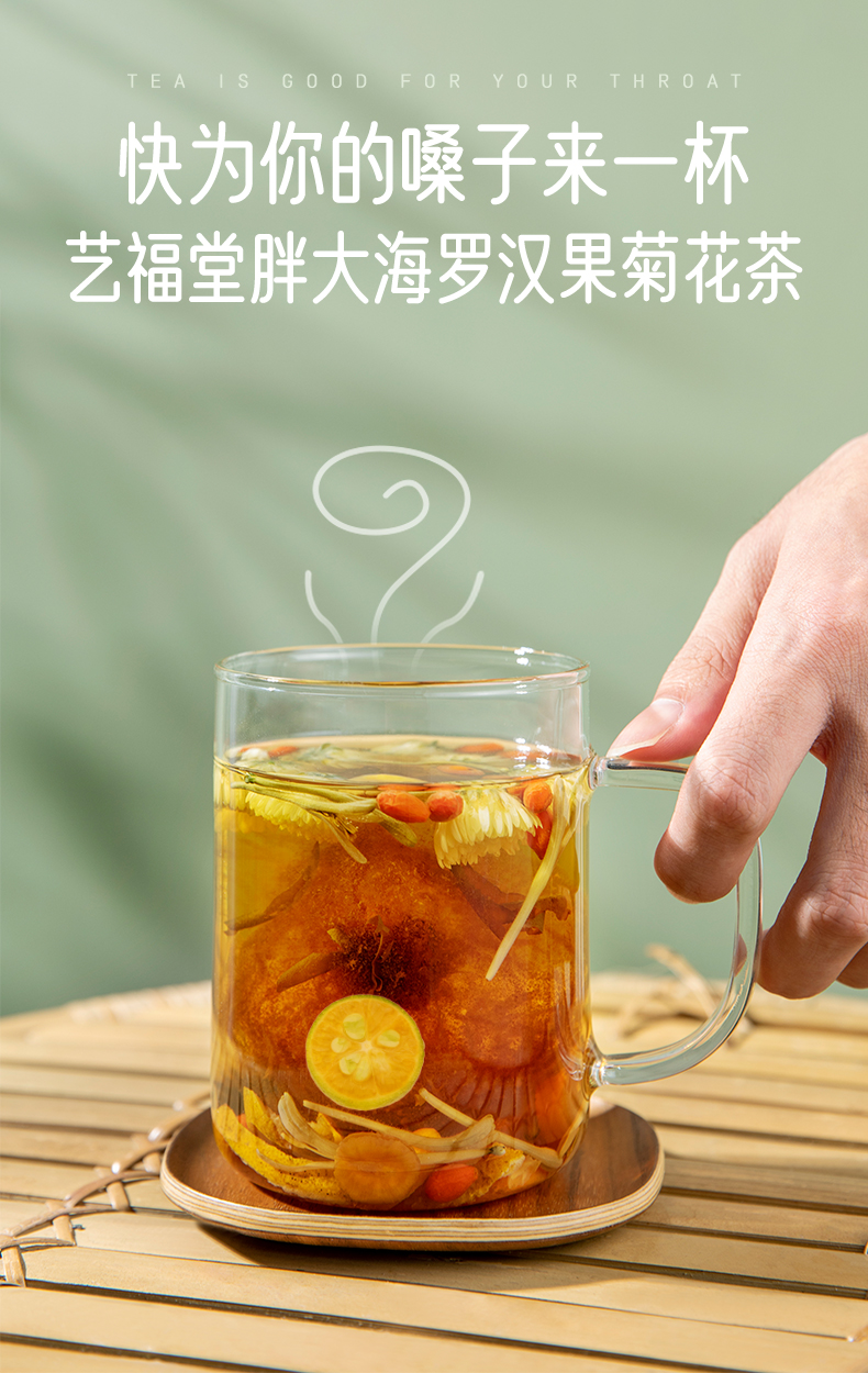 【专区3件83折】艺福堂 胖大海罗汉果菊花茶 独立小包 160g/盒