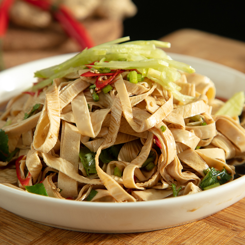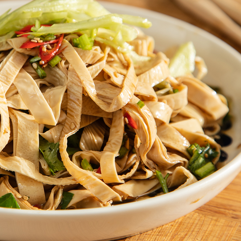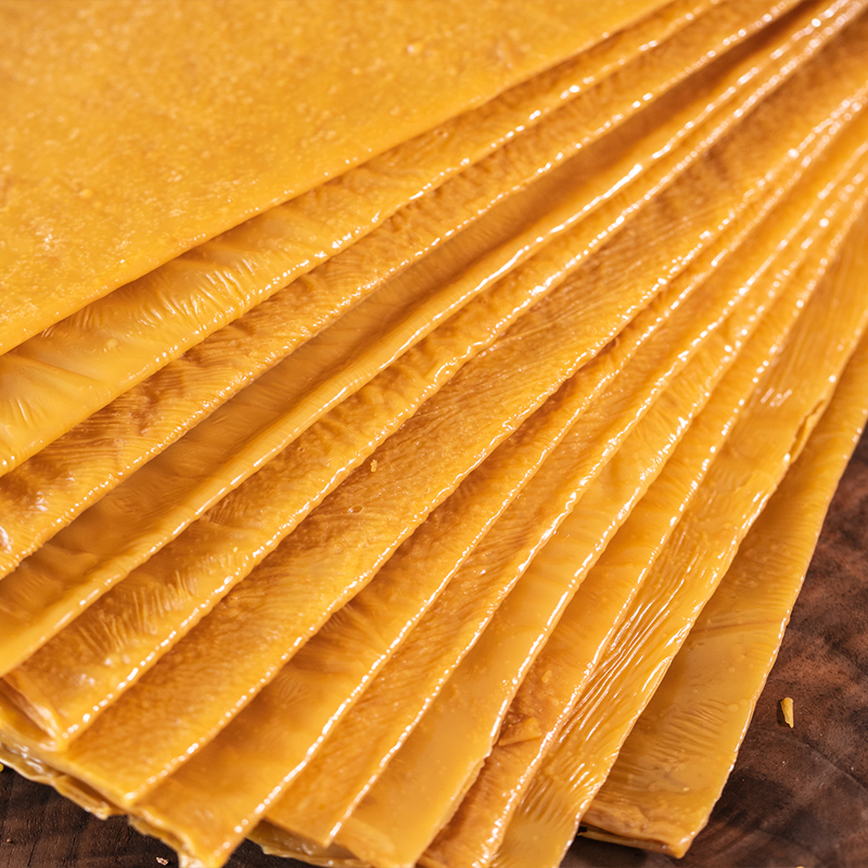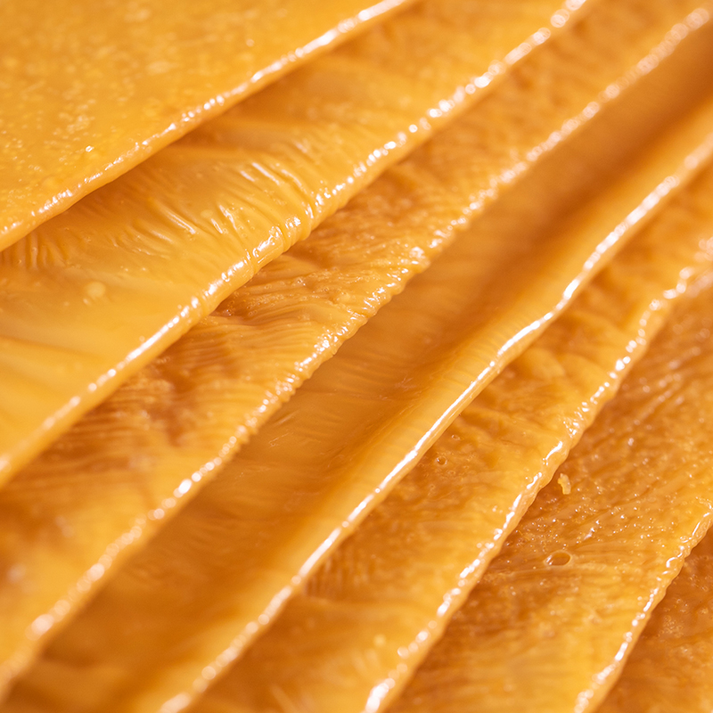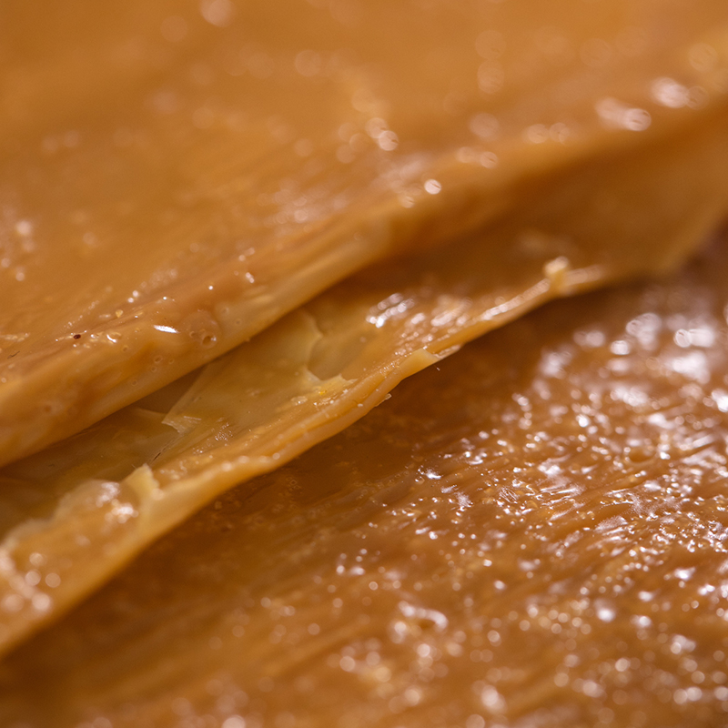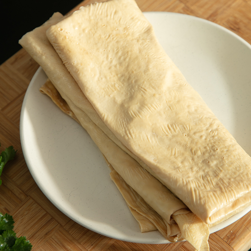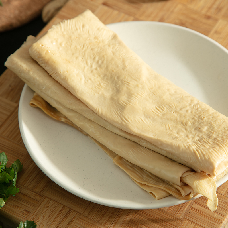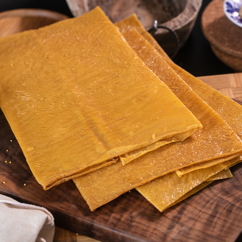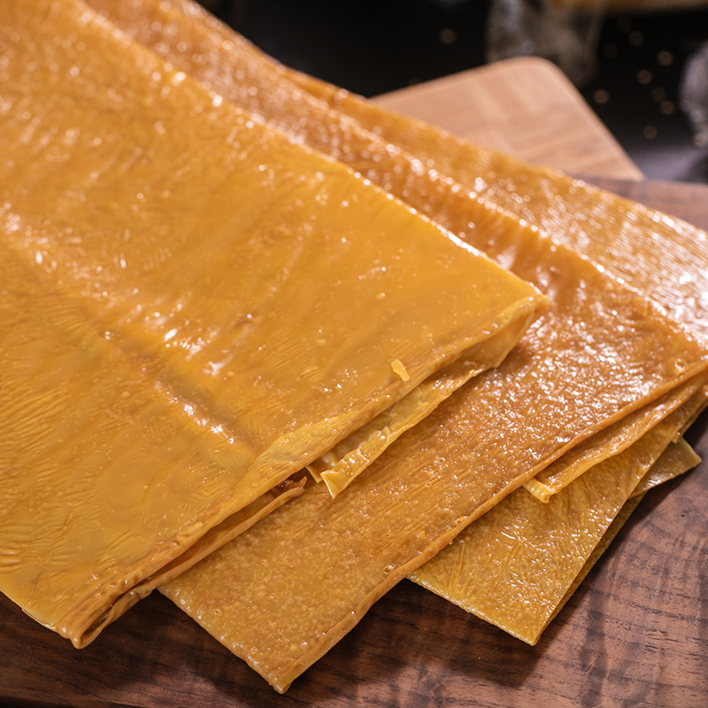 看到摸到的是色泽金黄、油光发亮的豆皮