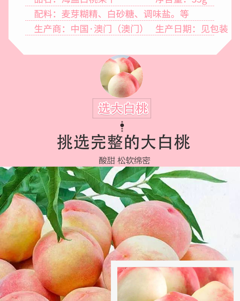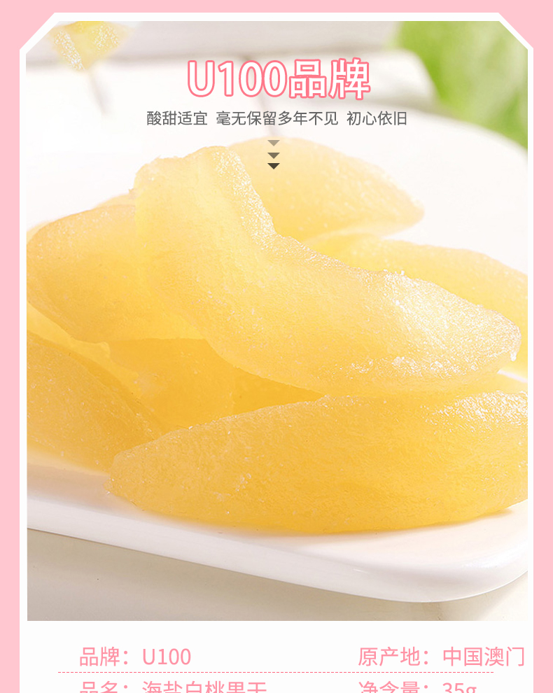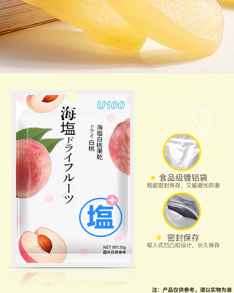 U100海盐白桃果干(蜜饯)35g/152421 酸甜适宜挑选完整大白桃制作果肉细韧