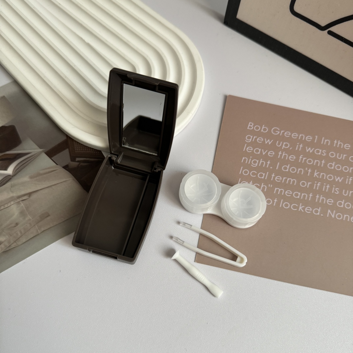 伴侣盒套装组成:双联盒、镊子 ,配戴棒、镜子。
