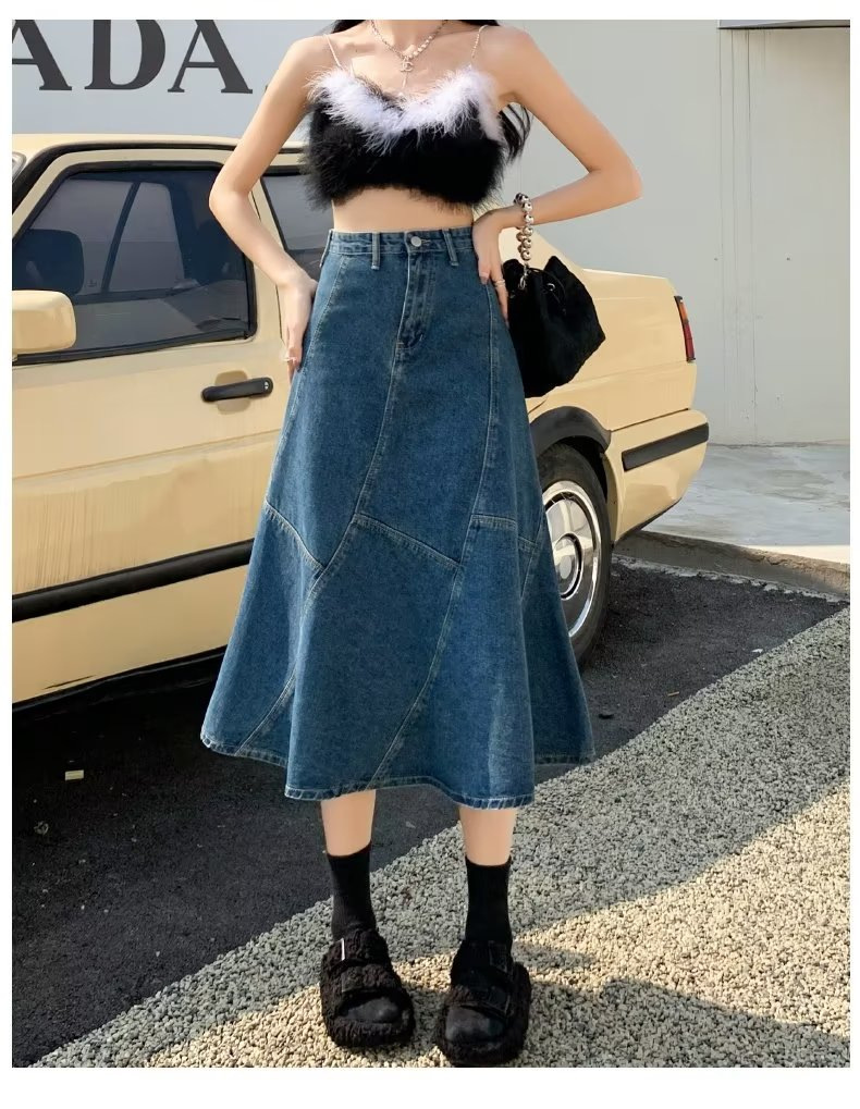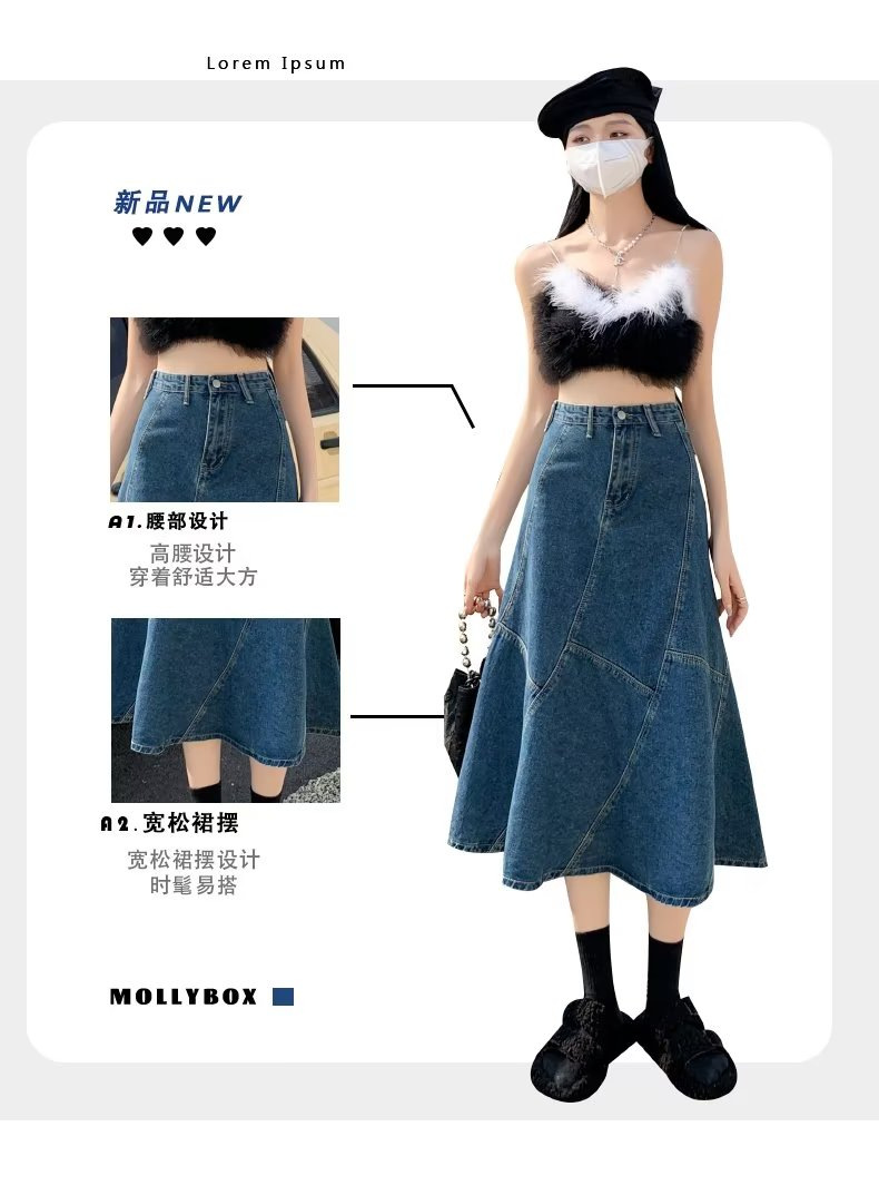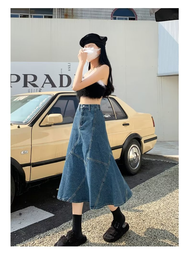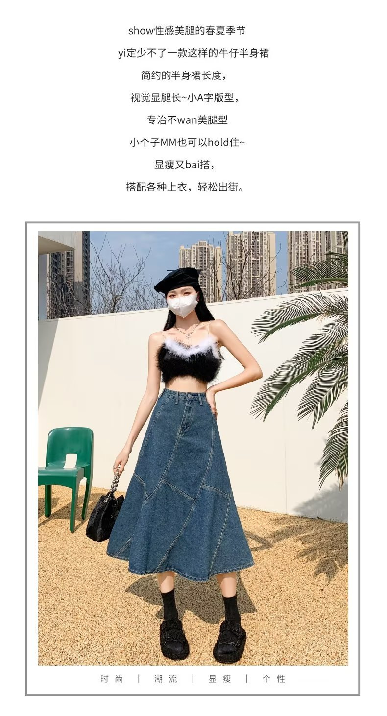 百搭中裙新款【气质牛仔裙 流行文艺半身裙女】慵懒潮流 自然腰ins时尚