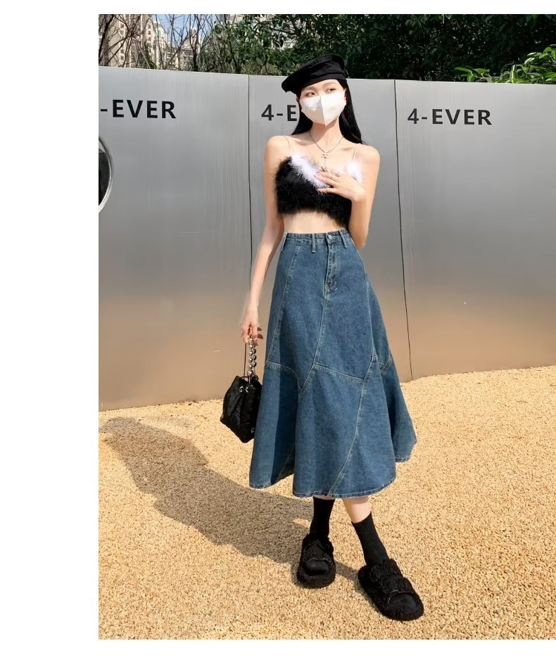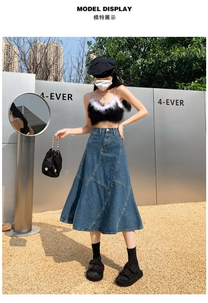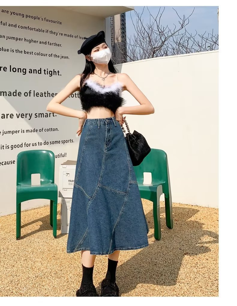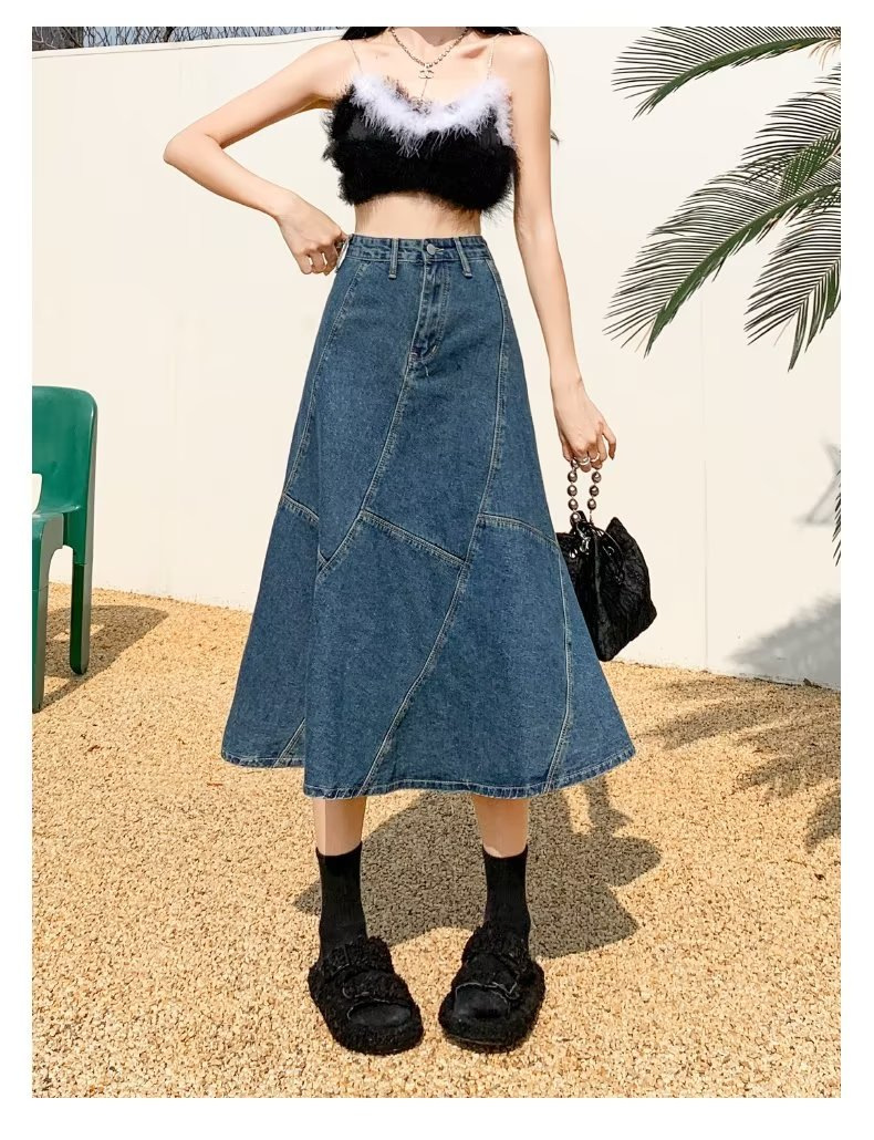 百搭中裙新款【气质牛仔裙 流行文艺半身裙女】慵懒潮流 自然腰ins时尚
