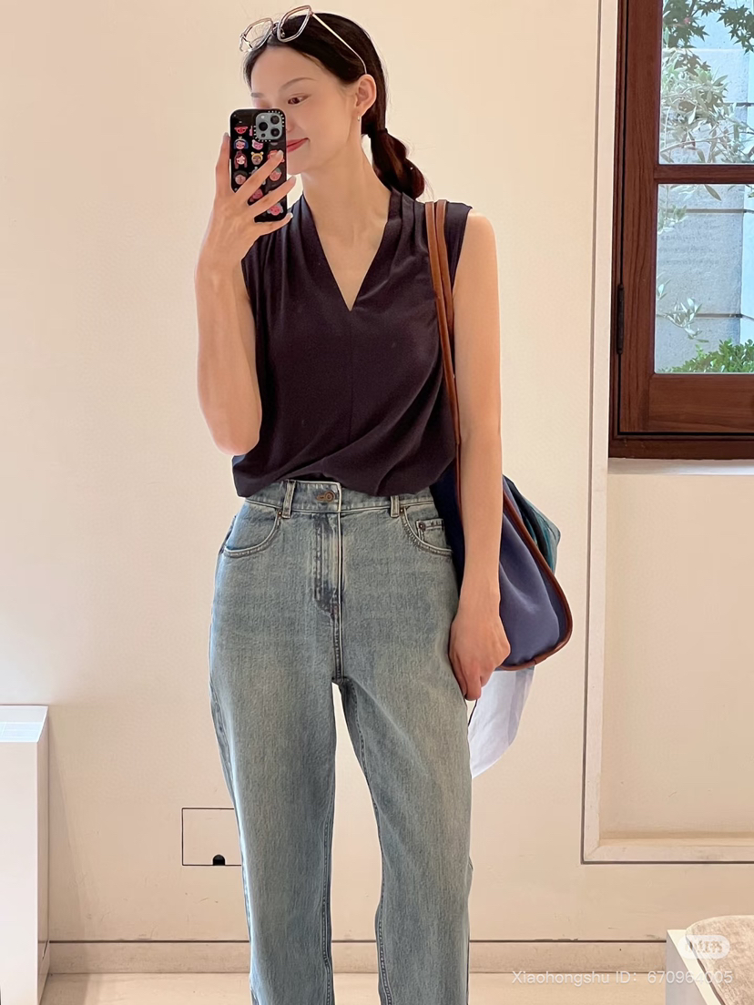 小直筒版型,复古时髦,还能藏起大粗腿的肉肉,不贴身很修饰身材[合十]