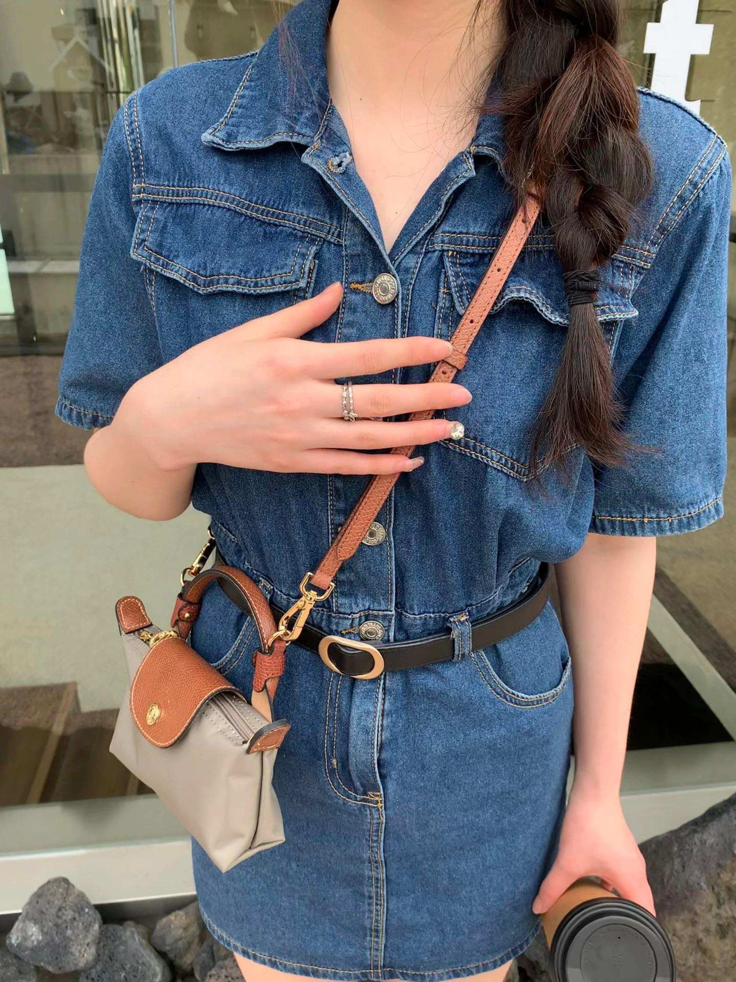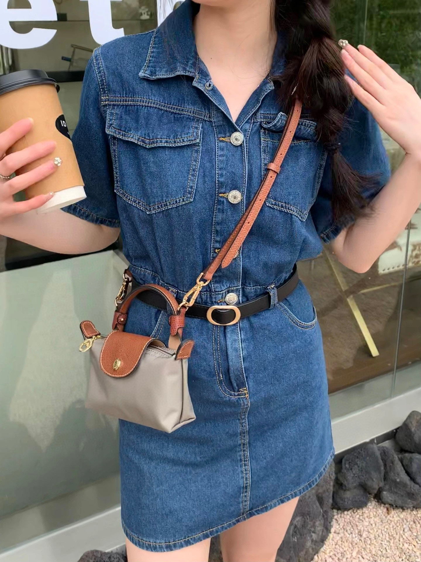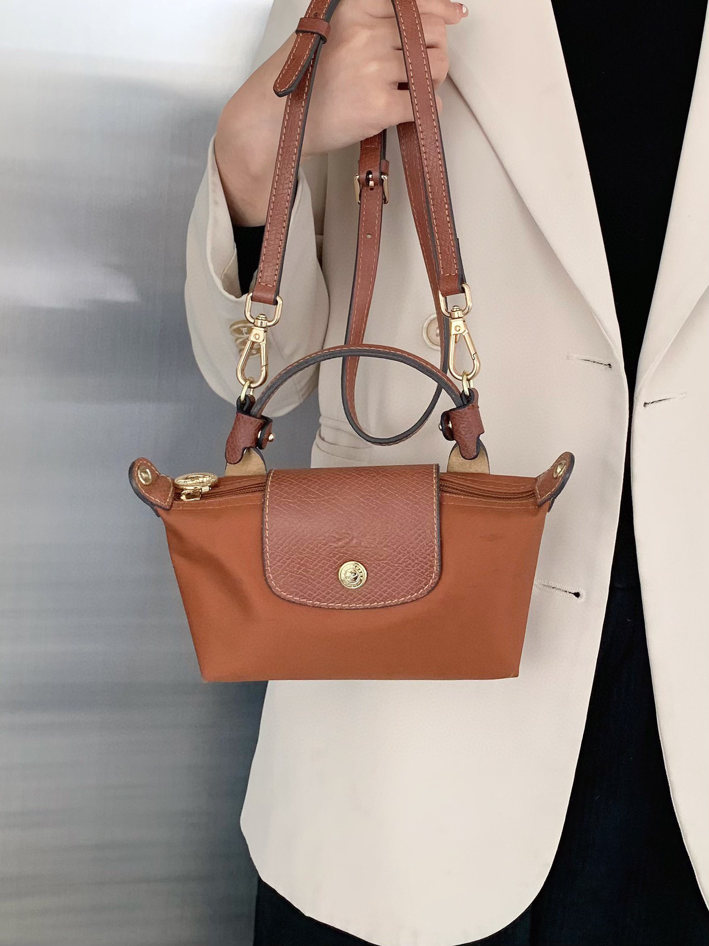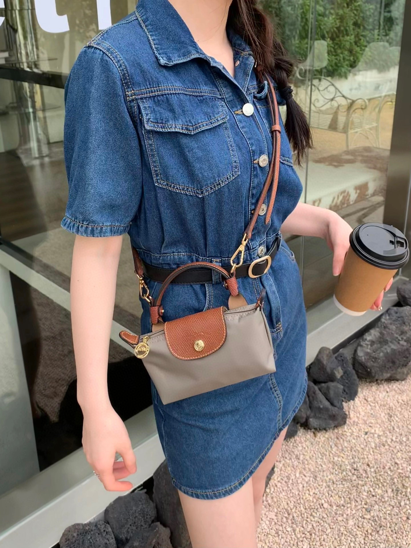 给它浅浅的改造一下,搭配斜挎的皮质肩带