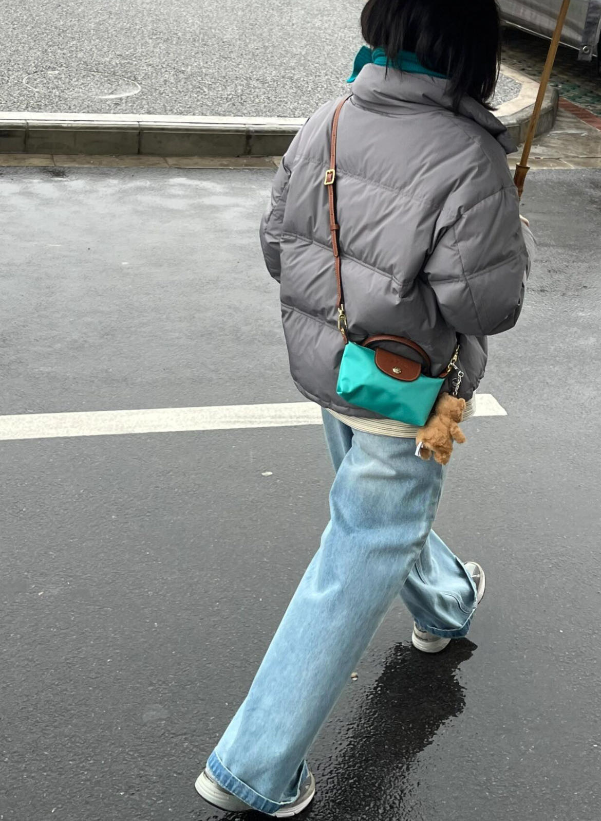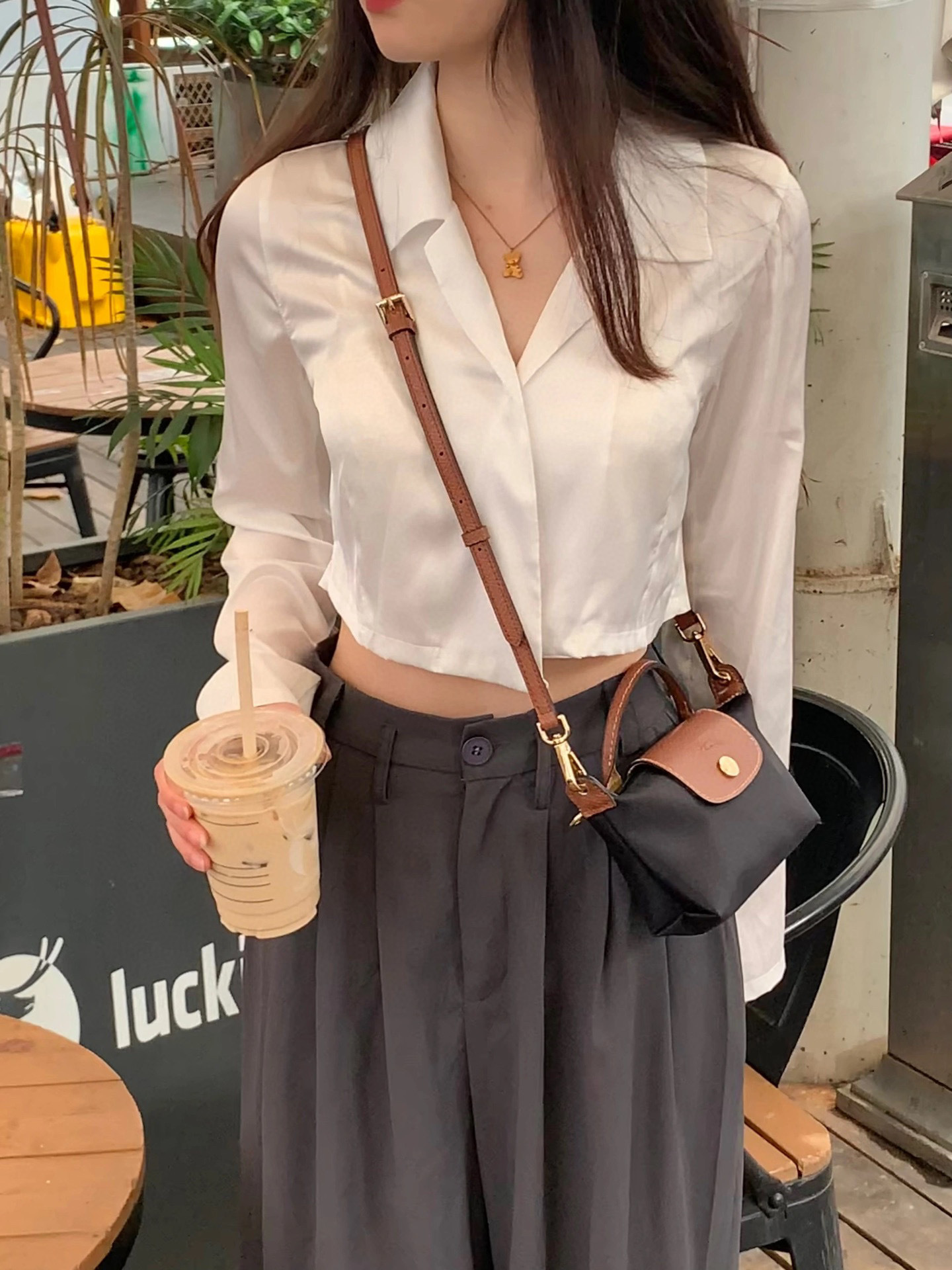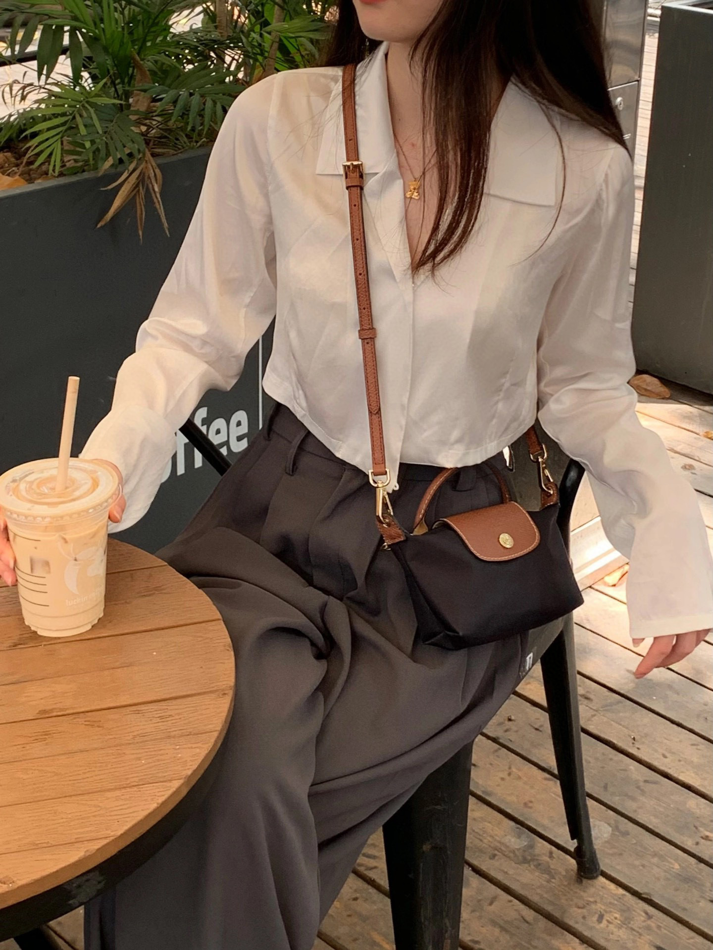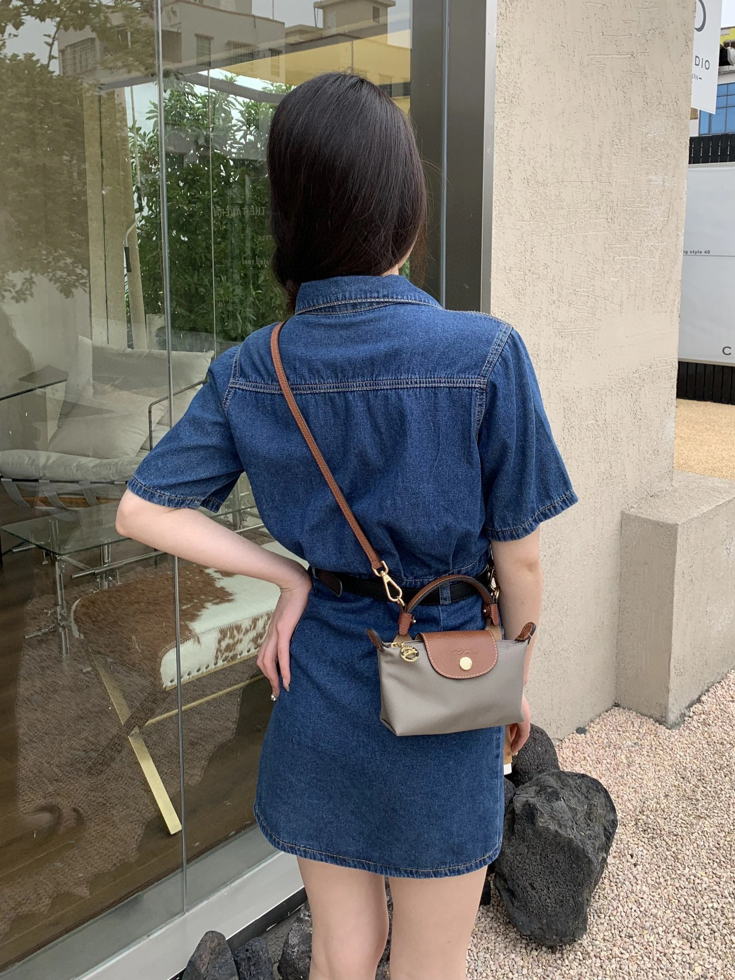 给它浅浅的改造一下,搭配斜挎的皮质肩带