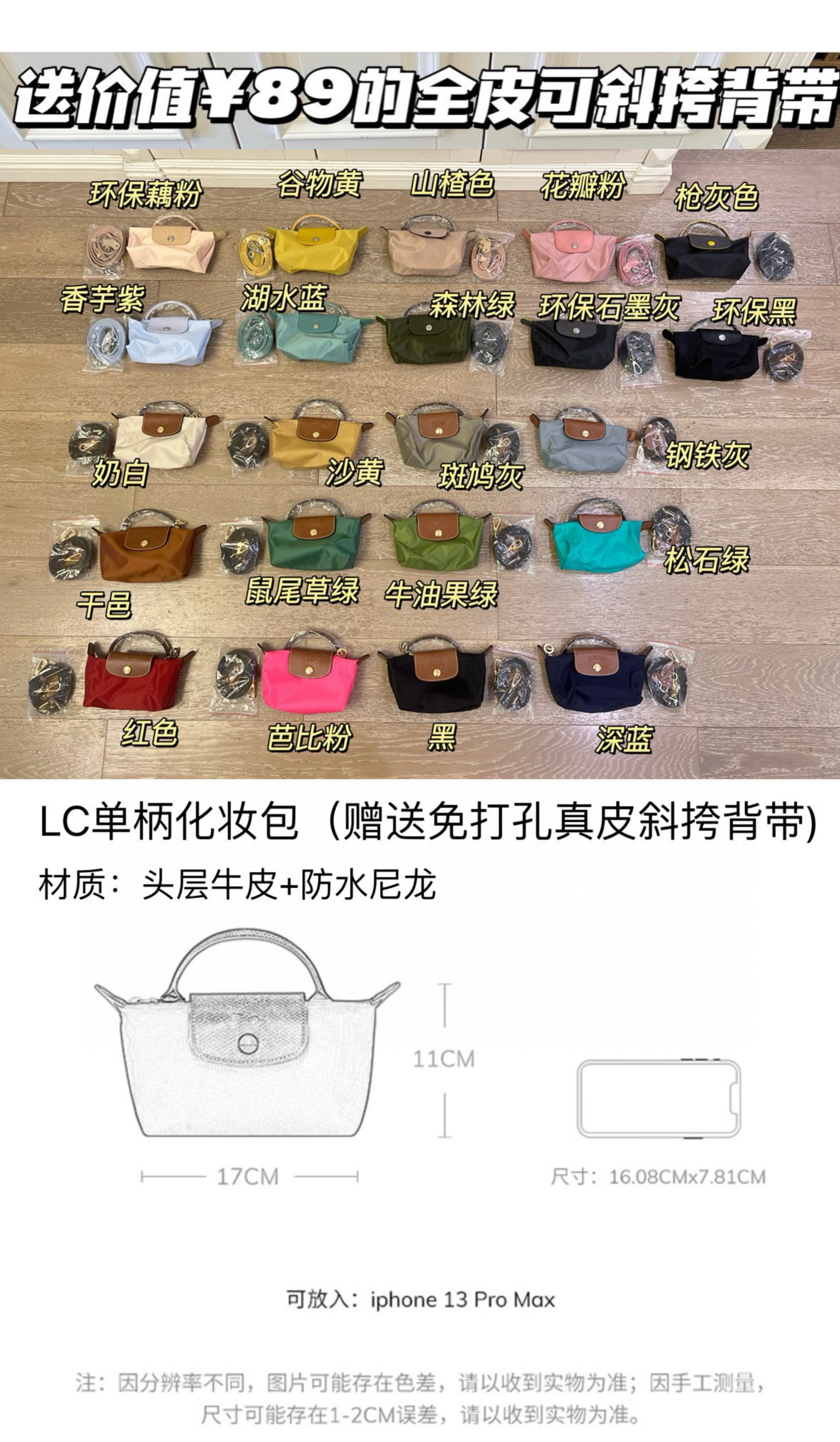 官网💰700+ 送价值¥89的免打孔真皮斜挎背带🙀【龙骧单柄化妆包 可手拎/可斜挎】✅原版材料,原版五金,真皮+防水尼龙!秒杀市面PU版✨22个全新色系加持,搭配各种服装都毫无压力~