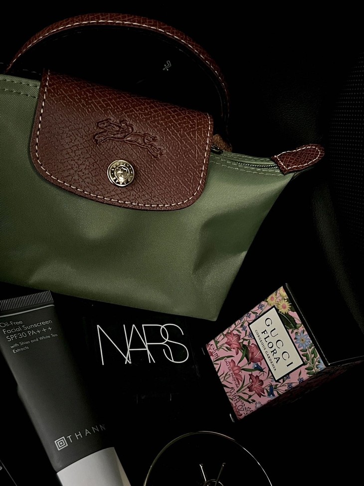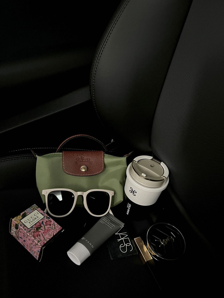 可以看到日常用的口红 气垫 墨镜