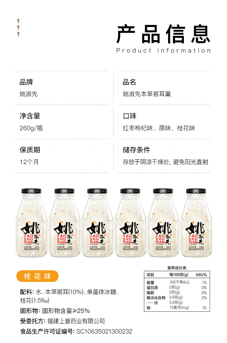 姚淑先本草银耳羹桂花味6瓶装