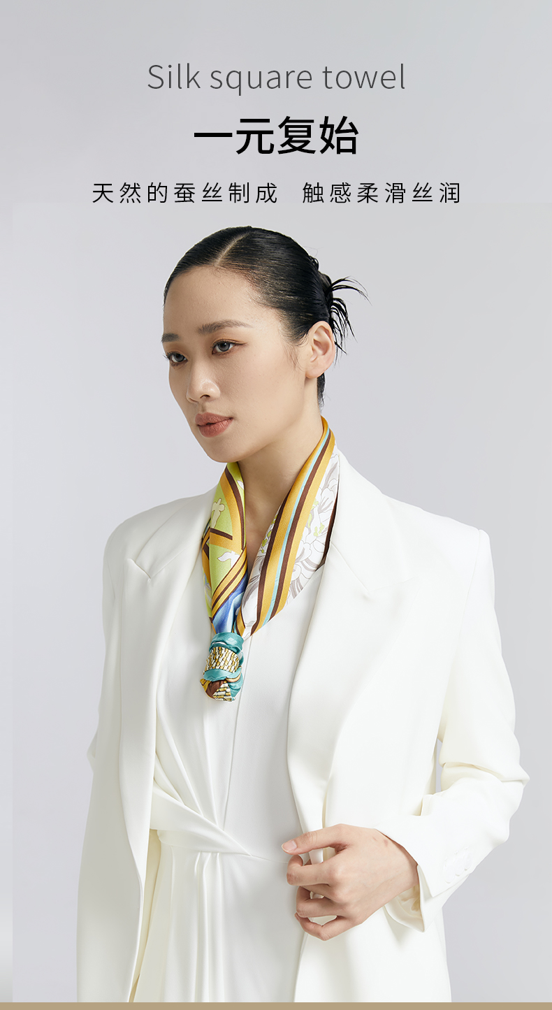 SAINTJOY/上久楷 真丝方巾 一元复始 FJS24016