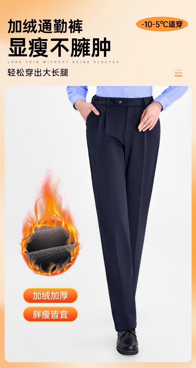 【实付满399送保温杯】【蜀黍家女款加绒通勤裤W1】四面弹力商务通勤西裤女款修身保暖直筒长裤