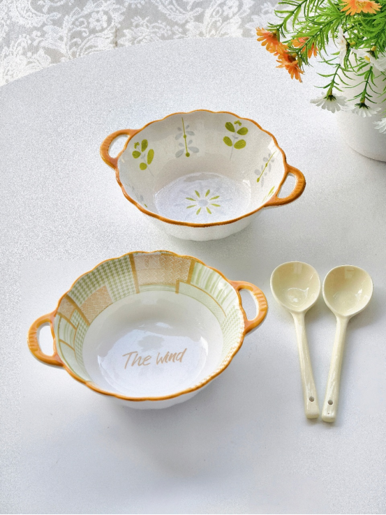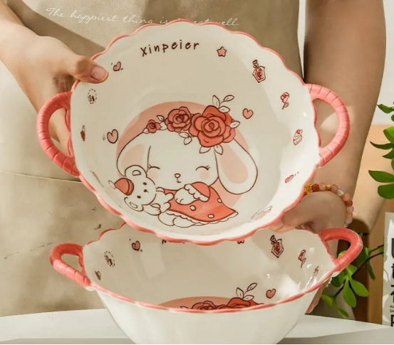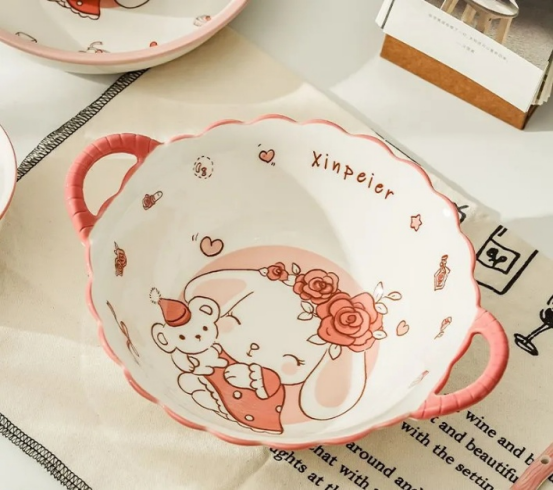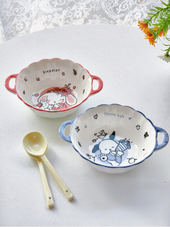 💥29.9💰【限时福利】8英寸【灼瓷Burnt porcelain·卡通双耳碗】✨6花色任选|买碗送勺!🎁微波炉/洗碗机通用|安全无铅卡通碗 💯 高颜值实用派!