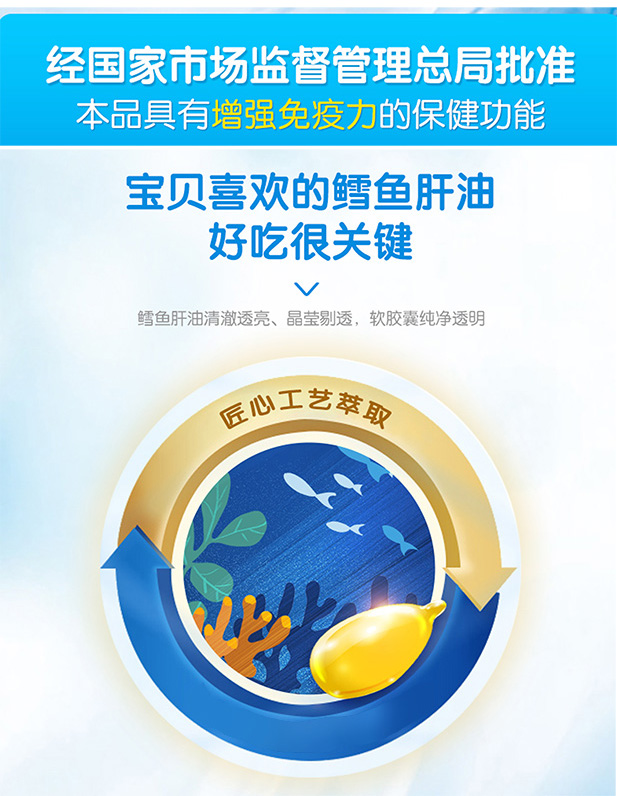 ⁵【鳕鱼肝油软胶囊】蓝帽子 每粒含60IU维D3+30mgDHA+维生素A 3岁以上 30粒/盒YY05-QTT-ZY