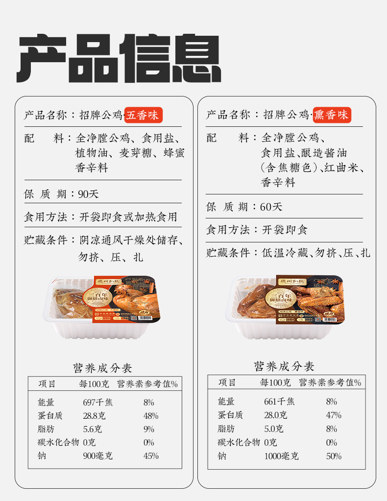[德州扒鸡] 保鲜招牌公鸡500g*2只 卤味熟食即食 山东特产
