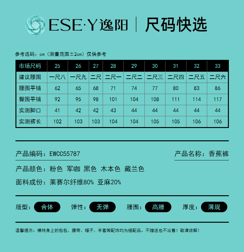 【莱赛尔亚麻-香蕉裤】逸阳初秋高腰显高显瘦休闲裤子5787