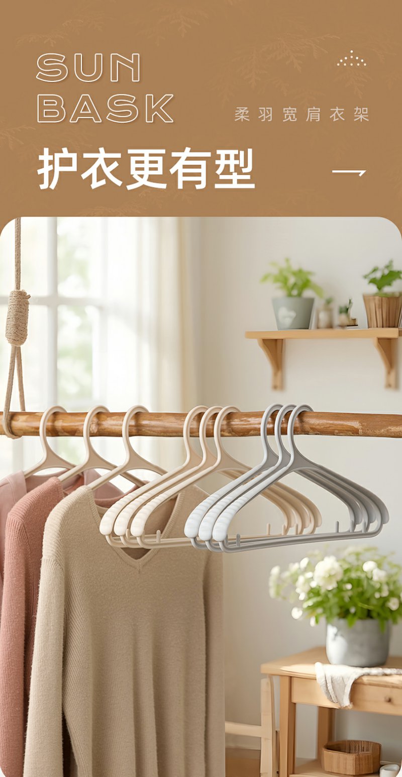 【茶花】柔羽宽肩衣架家用防滑无痕收纳挂衣架耐用