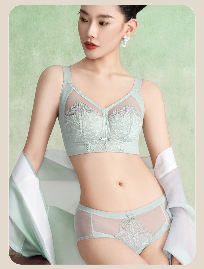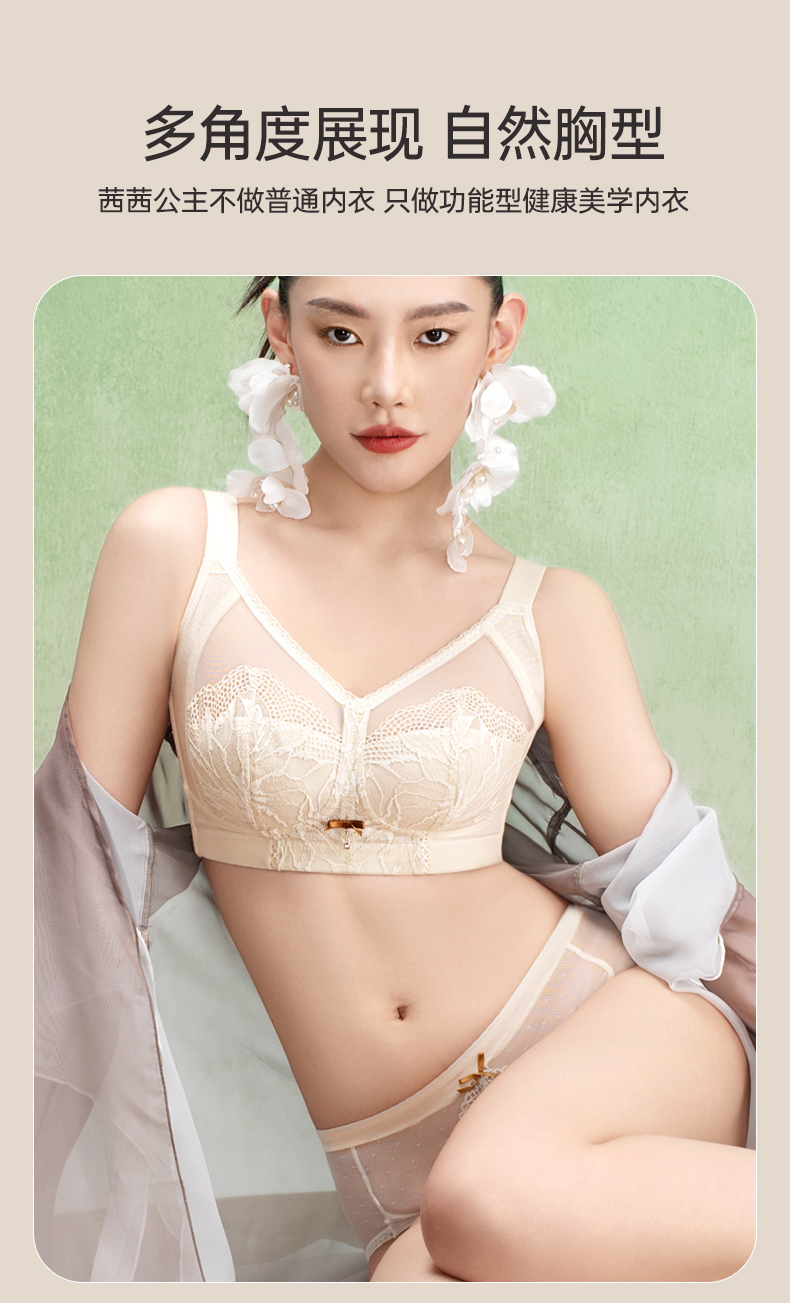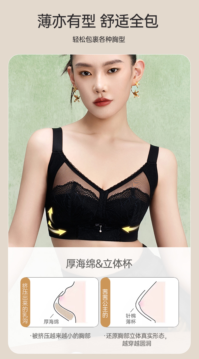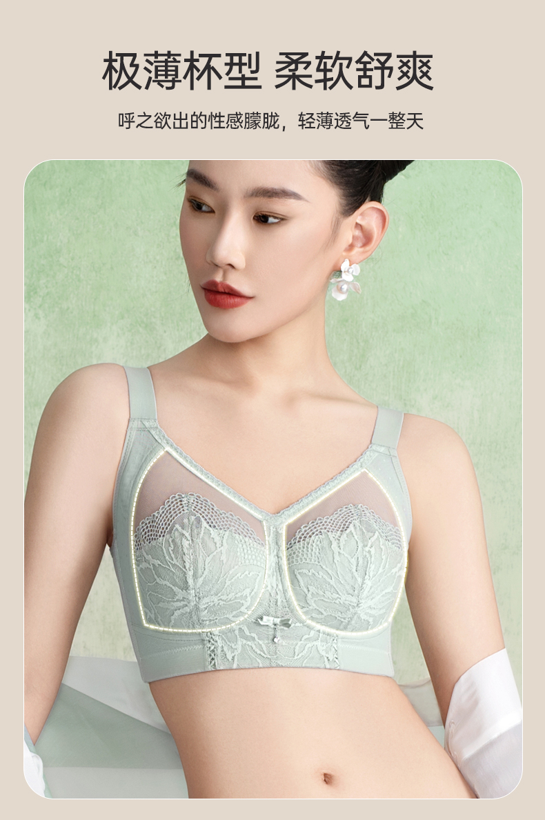 大胸显小 全罩杯 无钢圈 轻薄透气水晶杯文胸