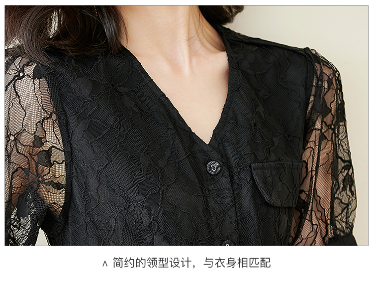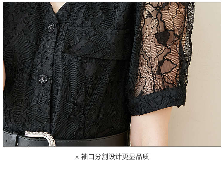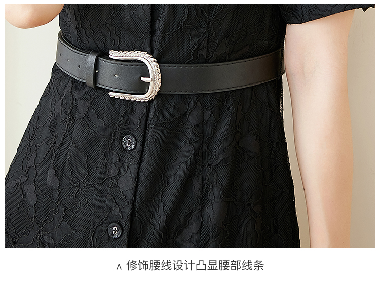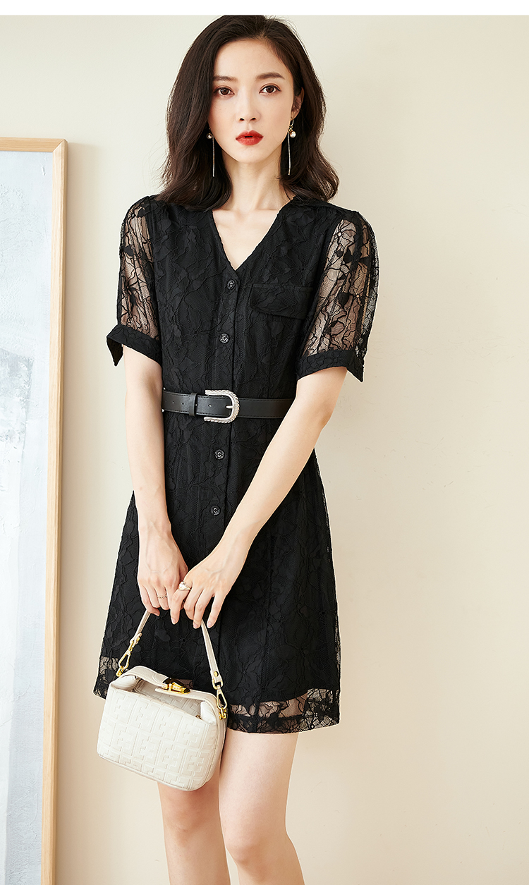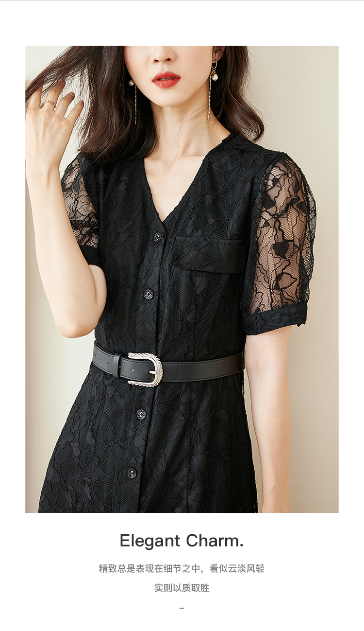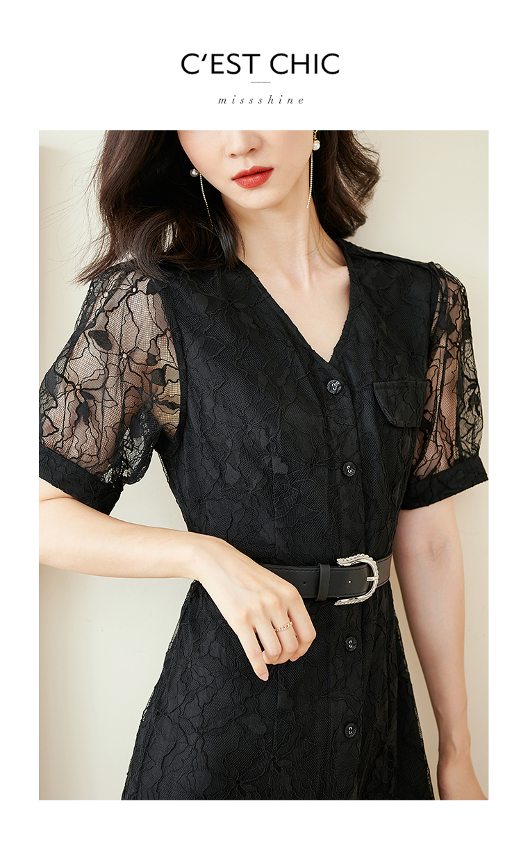 剩S/M/L 芳外夏季镂空蕾丝短裙提花泡泡袖拼接短袖连衣裙