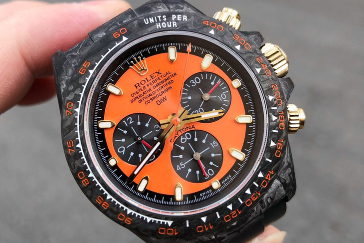 这种改装表最大的魅力是什么,是鉴定难度更好但名气不低!也就是佩戴起来本身就非常难分辨真假,感兴趣的表友不妨随着小编简单的了解一下这款TW厂劳力士宇宙计时迪通拿系列之碳纤维定制版腕表!