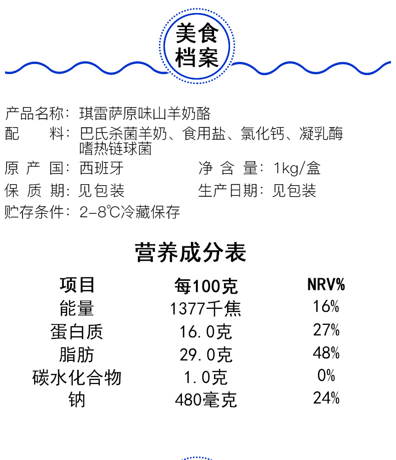 【中欧班列精选】西班牙琪雷萨原味山羊奶酪 原装进口即食西餐烘焙软质涂抹山羊奶酪 1kg/块