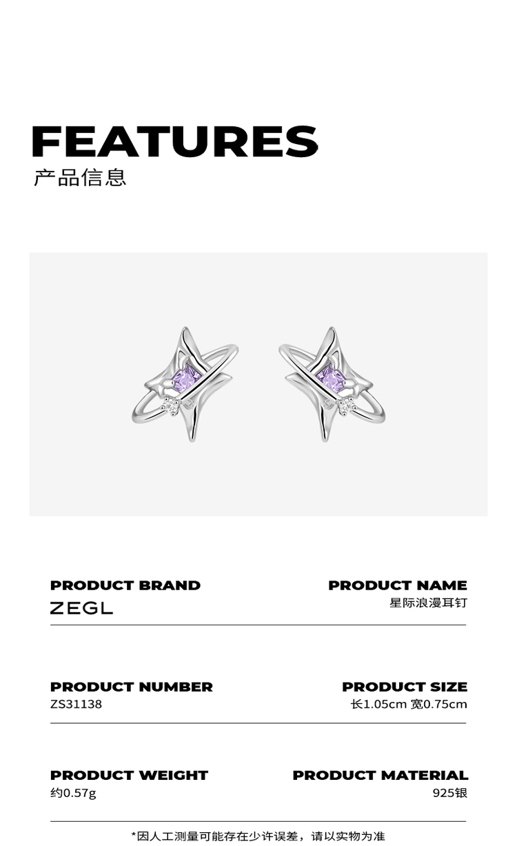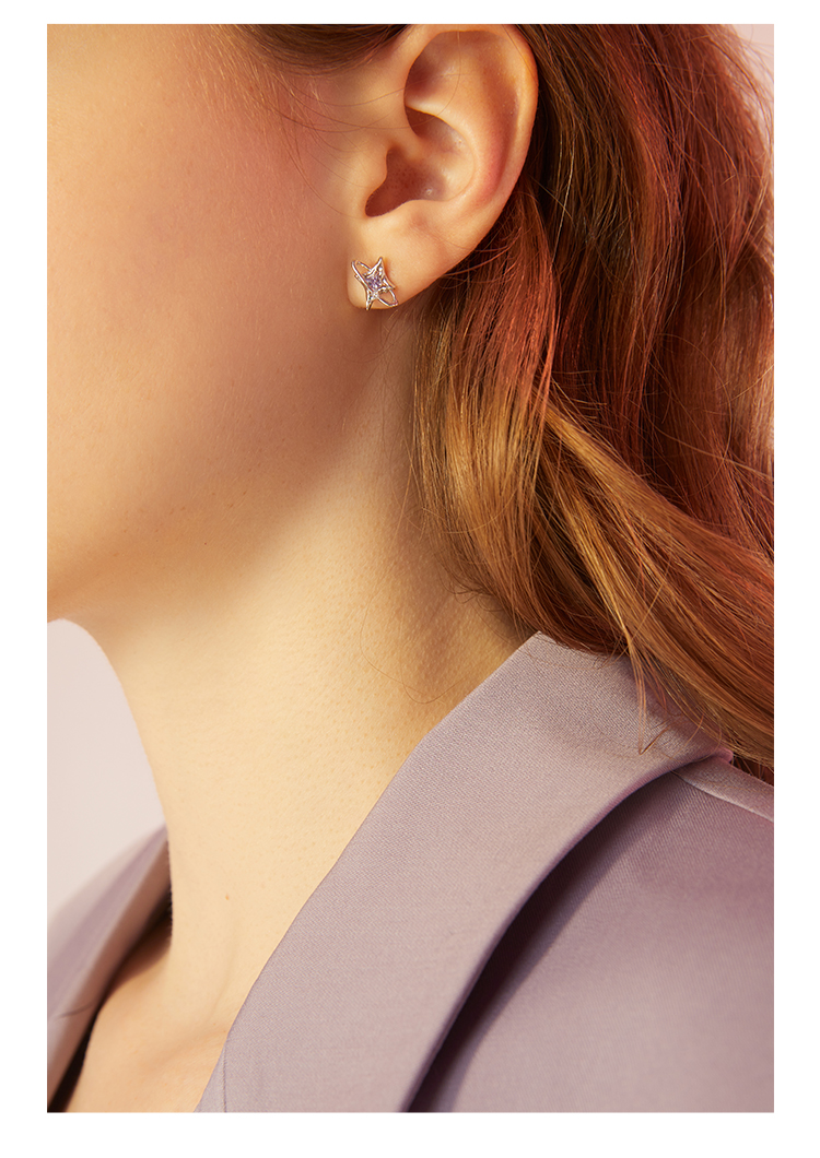 ZEGL设计师银河甜心系列925纯银四芒星耳钉女小众设计感耳环耳饰