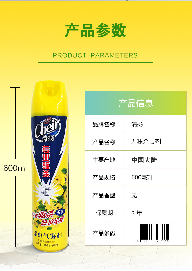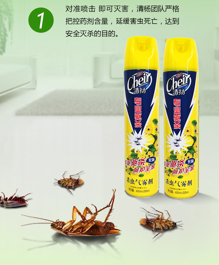 清扬 杀虫剂 无味喷雾杀虫水蟑螂药除螨灭蚊子飞虫苍蝇药除虫剂 驱蚊杀虫气雾剂 600ml