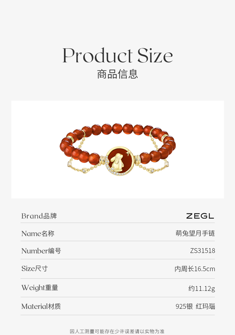 ZEGL设计师本命年系列心愿兔子红玛瑙手链女925银ins小众设计手饰