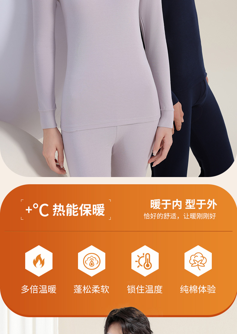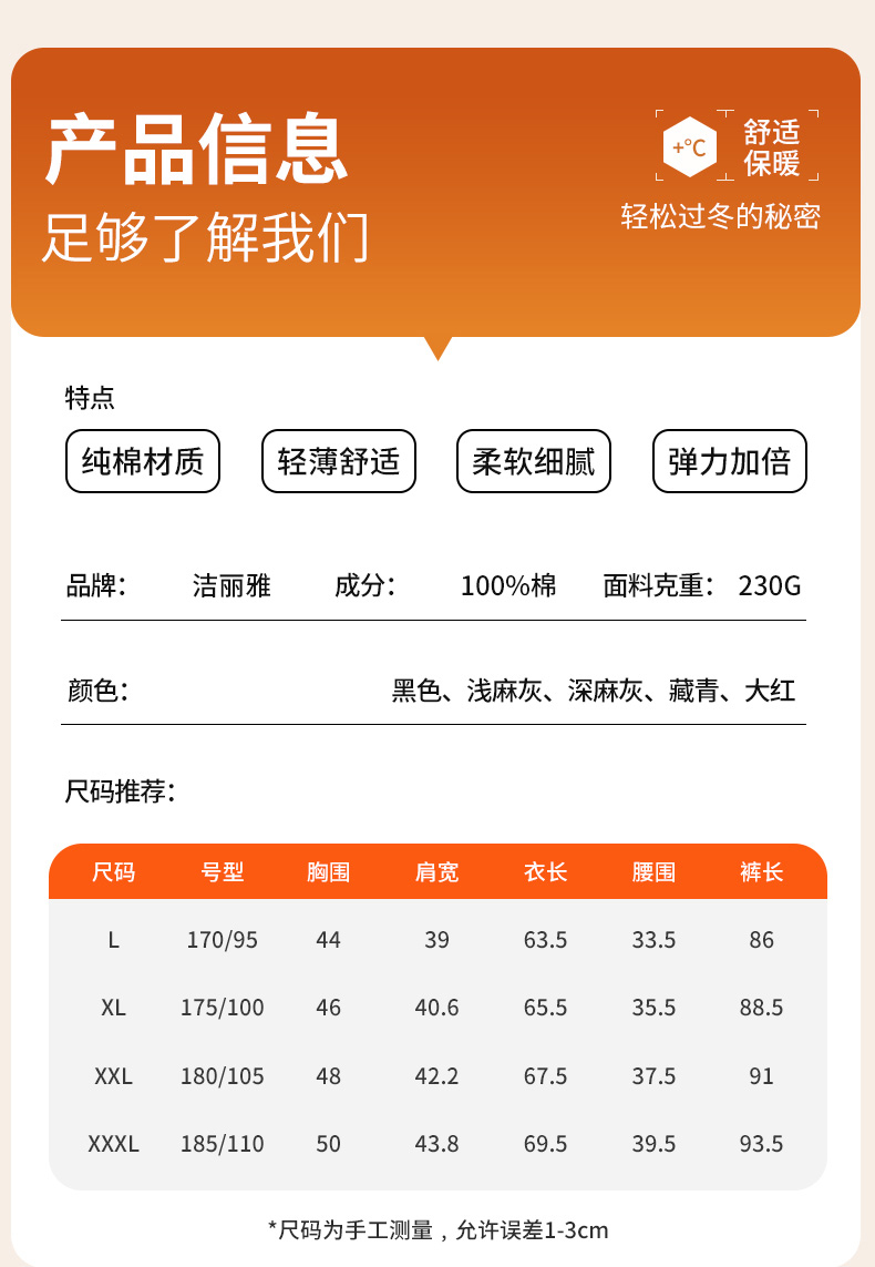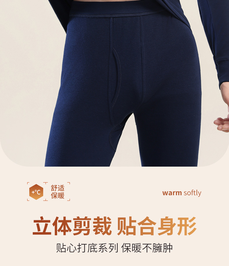 洁丽雅新款秋冬男士纯棉保暖内衣套装修身显瘦打底秋衣秋裤