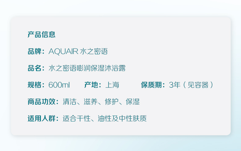 【新老包装随机】水之密语沐浴露 海盐嘭润保湿补水滋养修护香氛沐浴露600ml