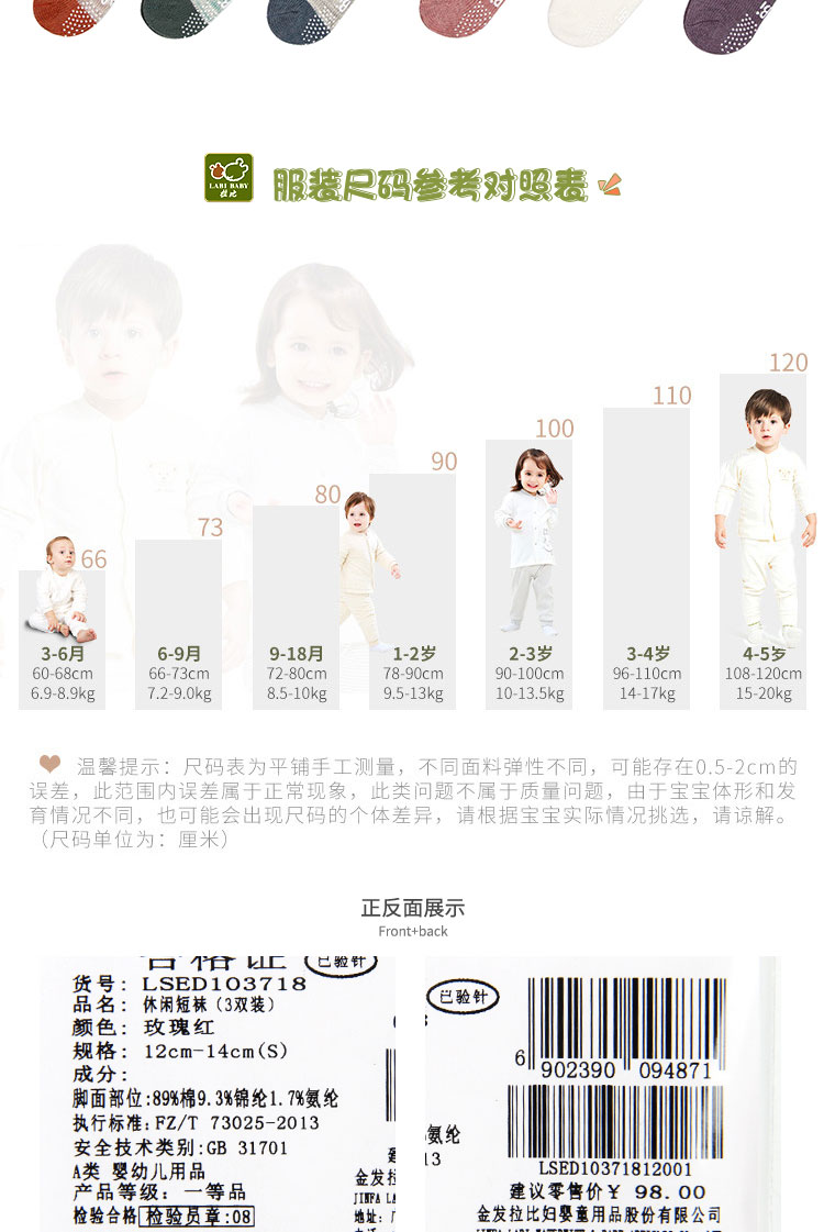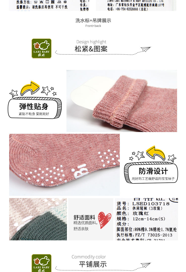 拉比-鞋袜类(常年)C9休闲短袜(3条装)玫瑰红