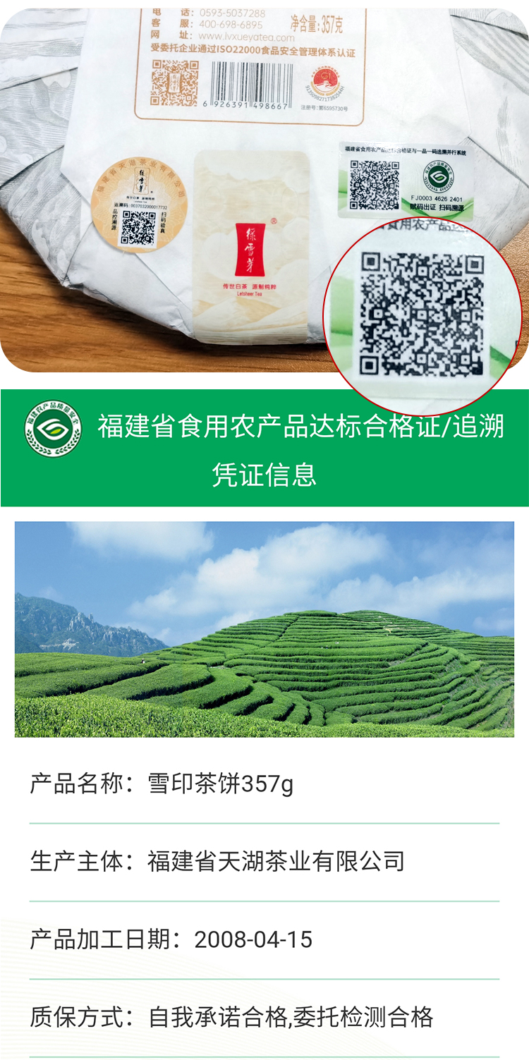 白牡丹 |绿雪芽 雪印 2008年白牡丹 福鼎陈年老白茶357g
