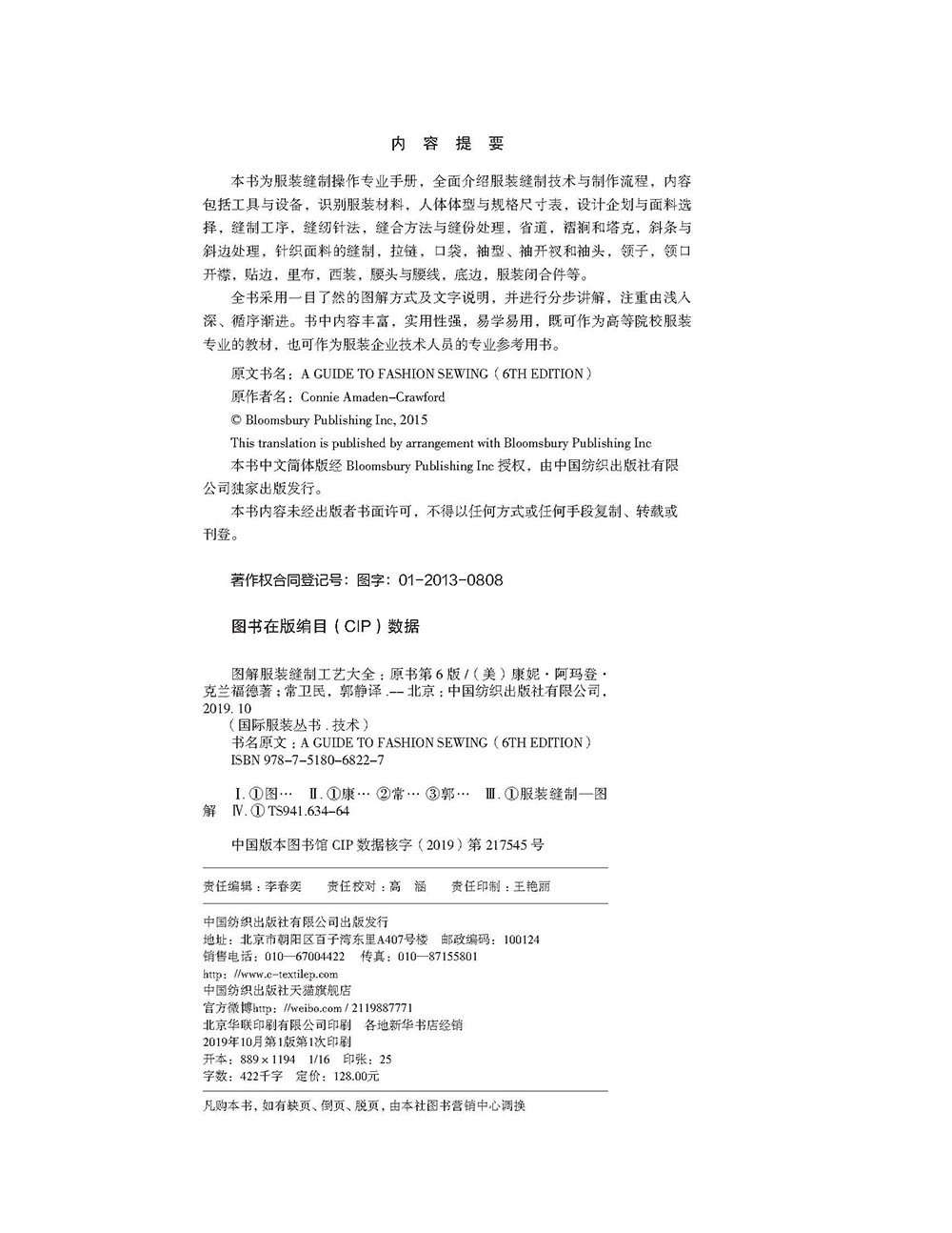 2020新版 图解服装缝制工艺大全:原书第6版 克兰福德 服装专业教材 服装款式设计制作教程 服装缝制裁剪打板技巧 服装纺织入门教材