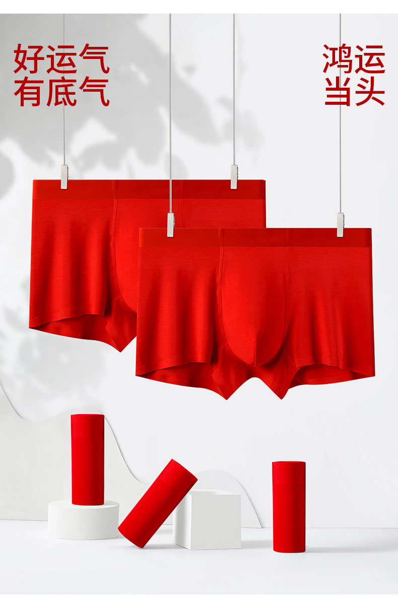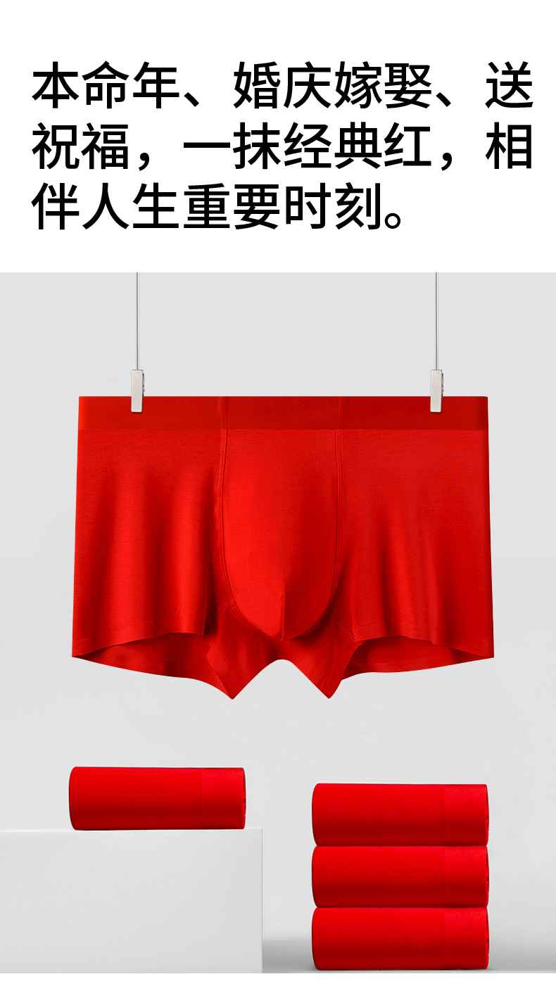【本命年红内裤】爱帝男士鸿运裤大红色3条组合装内裤