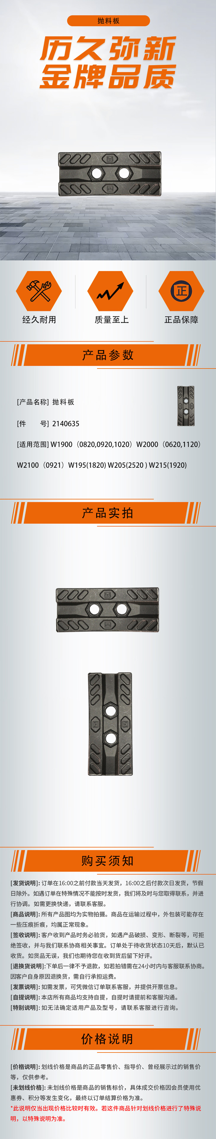 【抛料板2140635】适用于W1900(0820,0920,1020)W2000(0620,1120)W2100(0921)W195(1820) W205(2520 ) W215(1920)