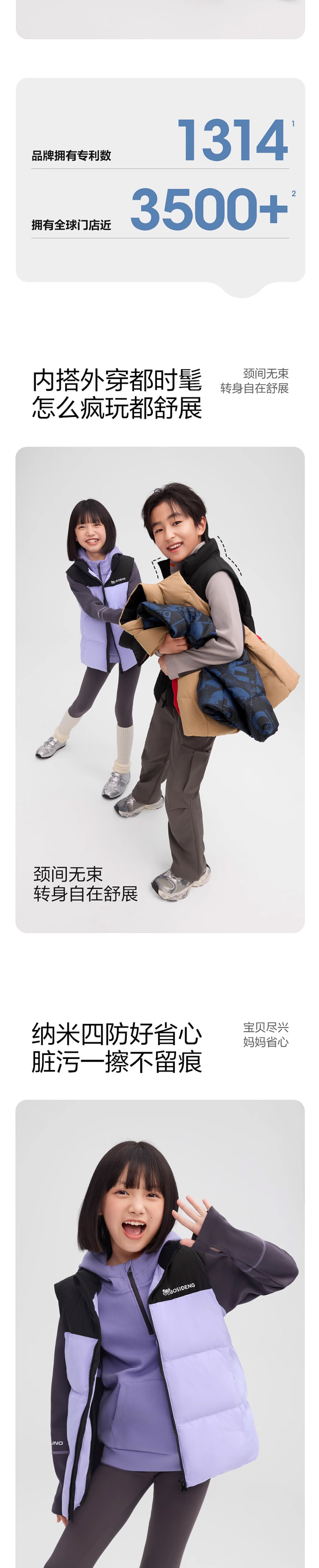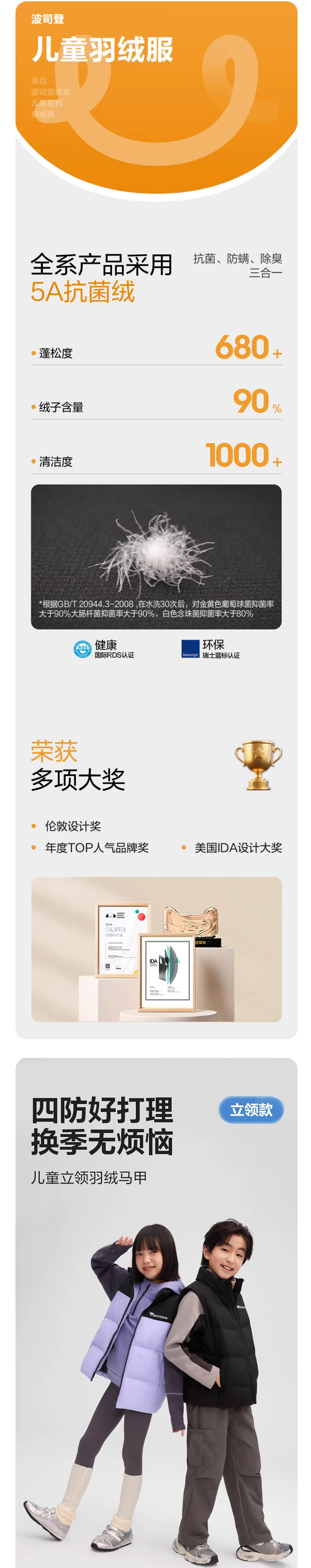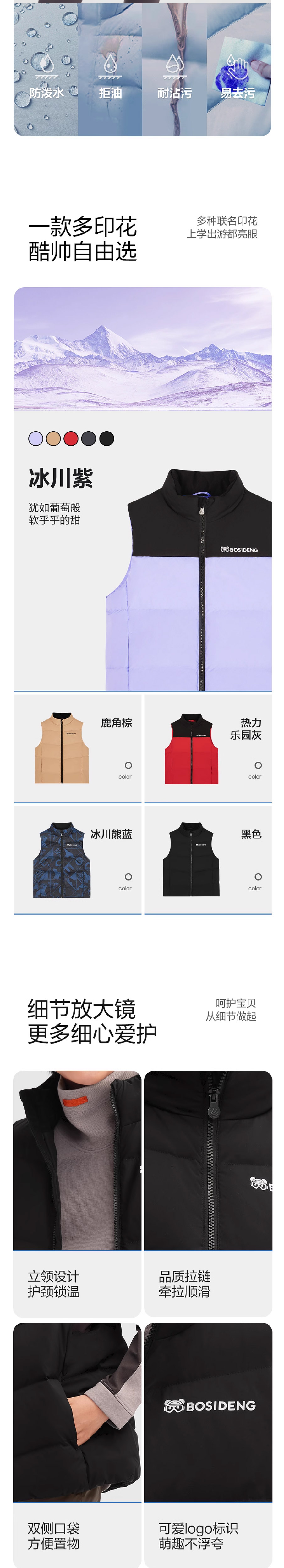 波司登儿童羽绒服2025新款户外羽绒马甲T250246100
