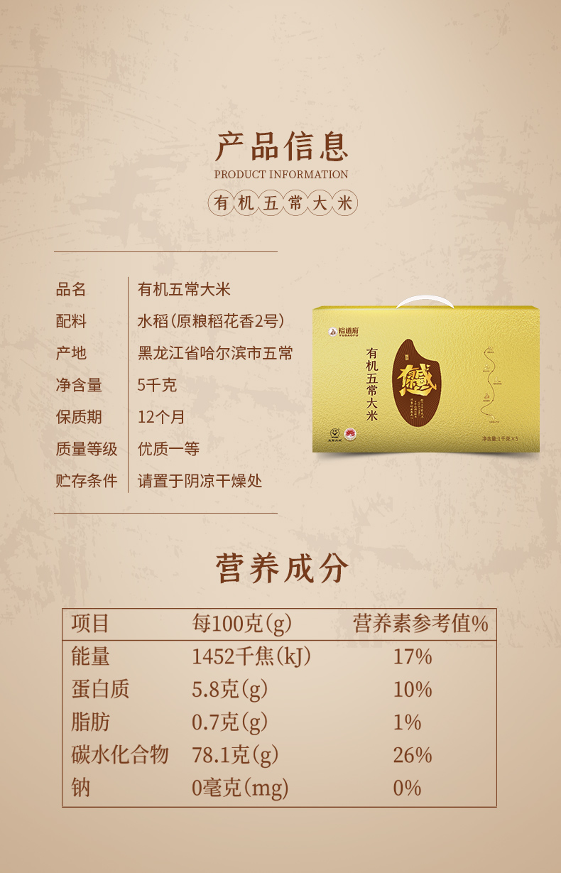 (翼帆)裕道府(匠心系列)五常有机大米礼盒5kg