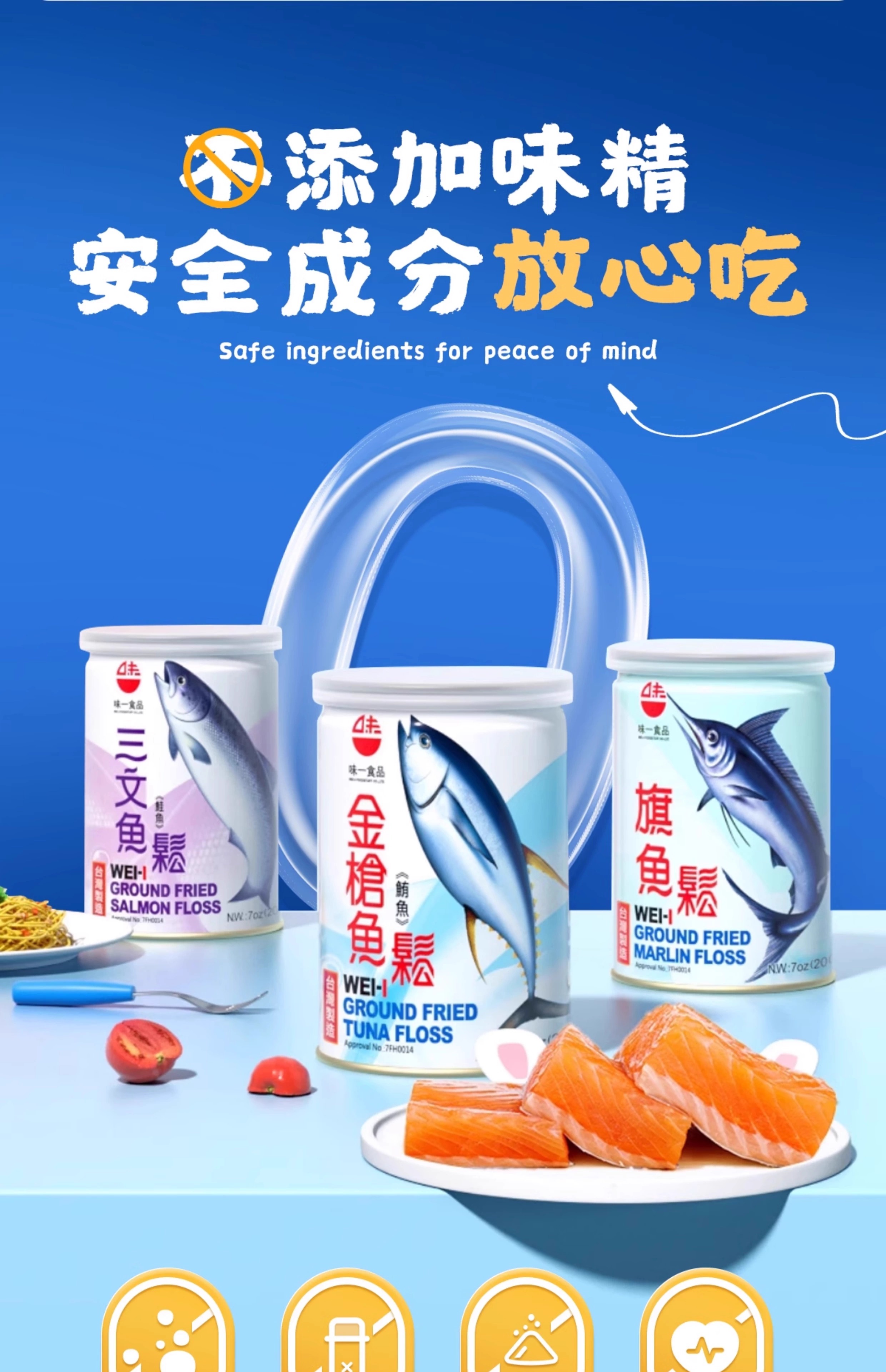 味一金枪鱼松/三文鱼松/海苔芝麻金枪鱼松(鲔鱼松)200g 天然深海鱼松口感细腻 057583/030002-1/057587