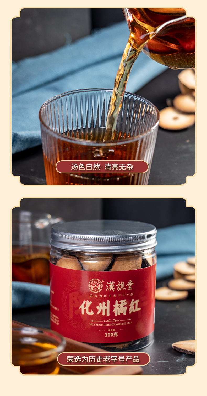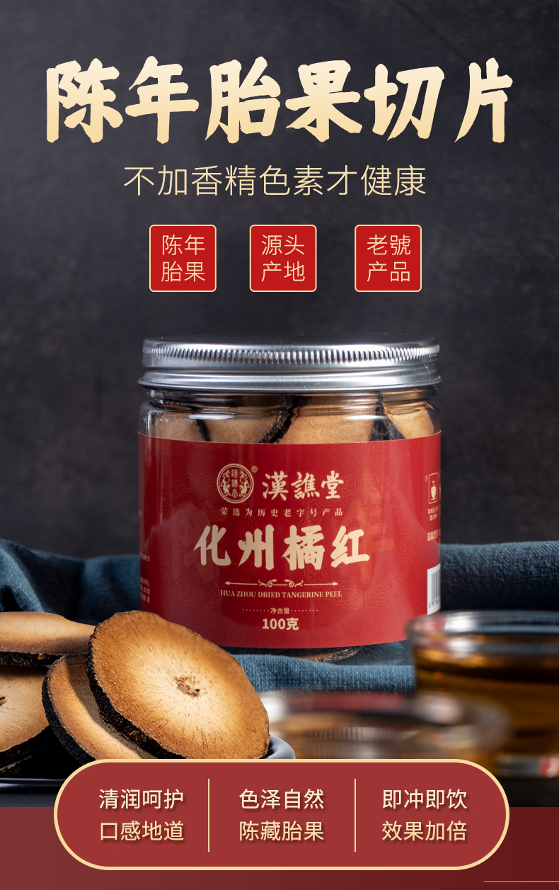 【历史好字号】汉谯堂化州橘红切片化桔红化橘红正宗化州橘红片100克每罐