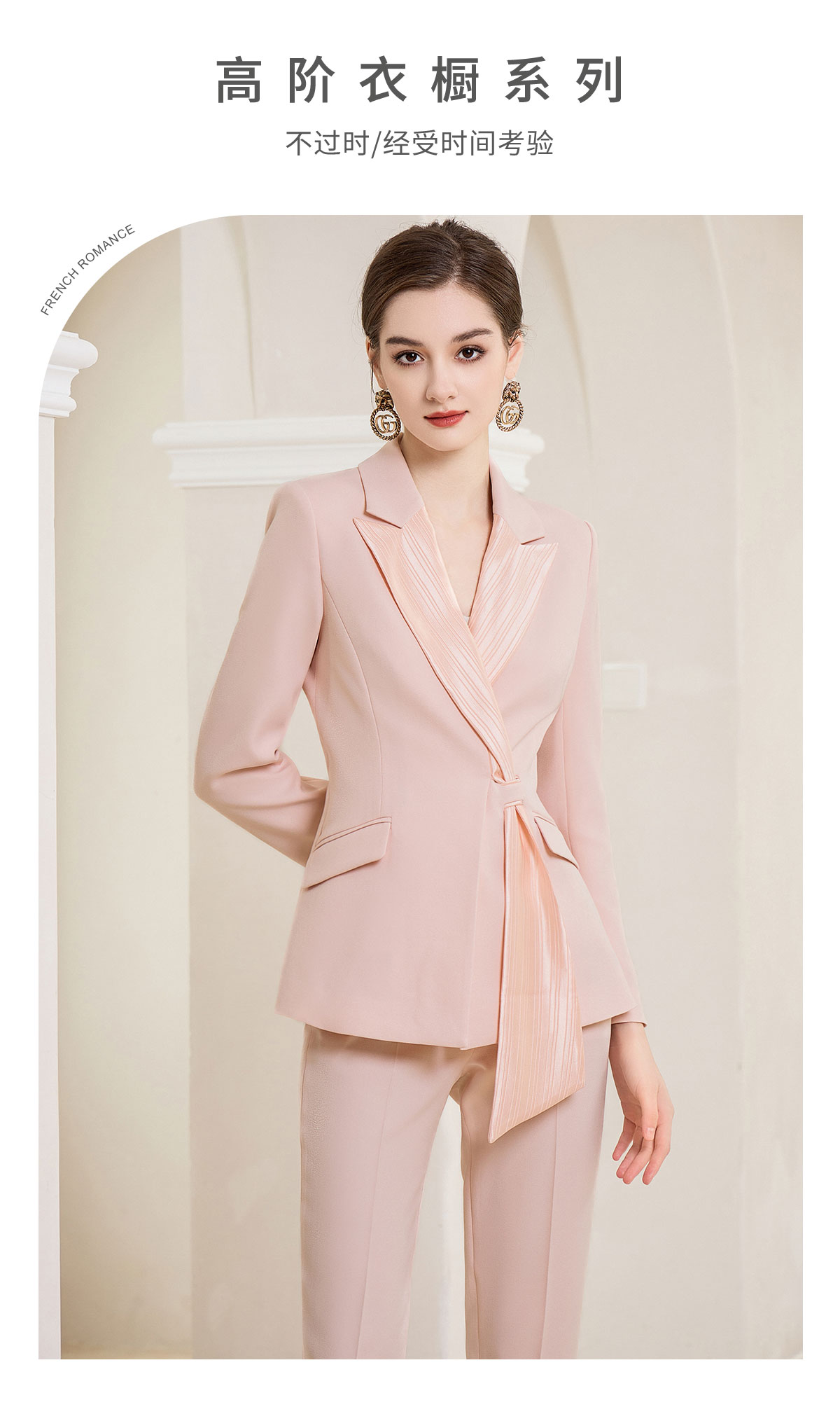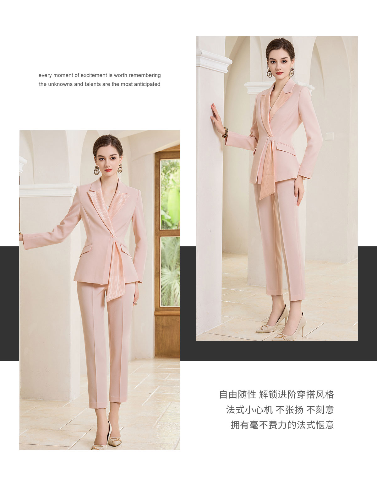 IWY/优雅干练粉色西装套装女气质绑带西服美容院主持人上镜西装olCP1861
