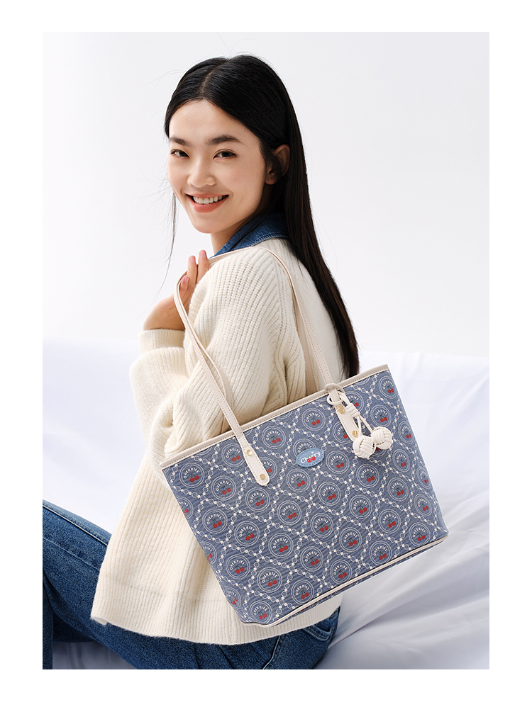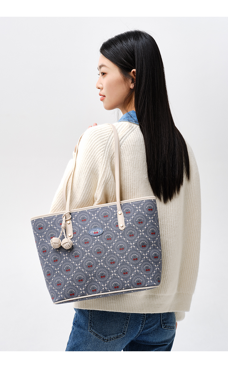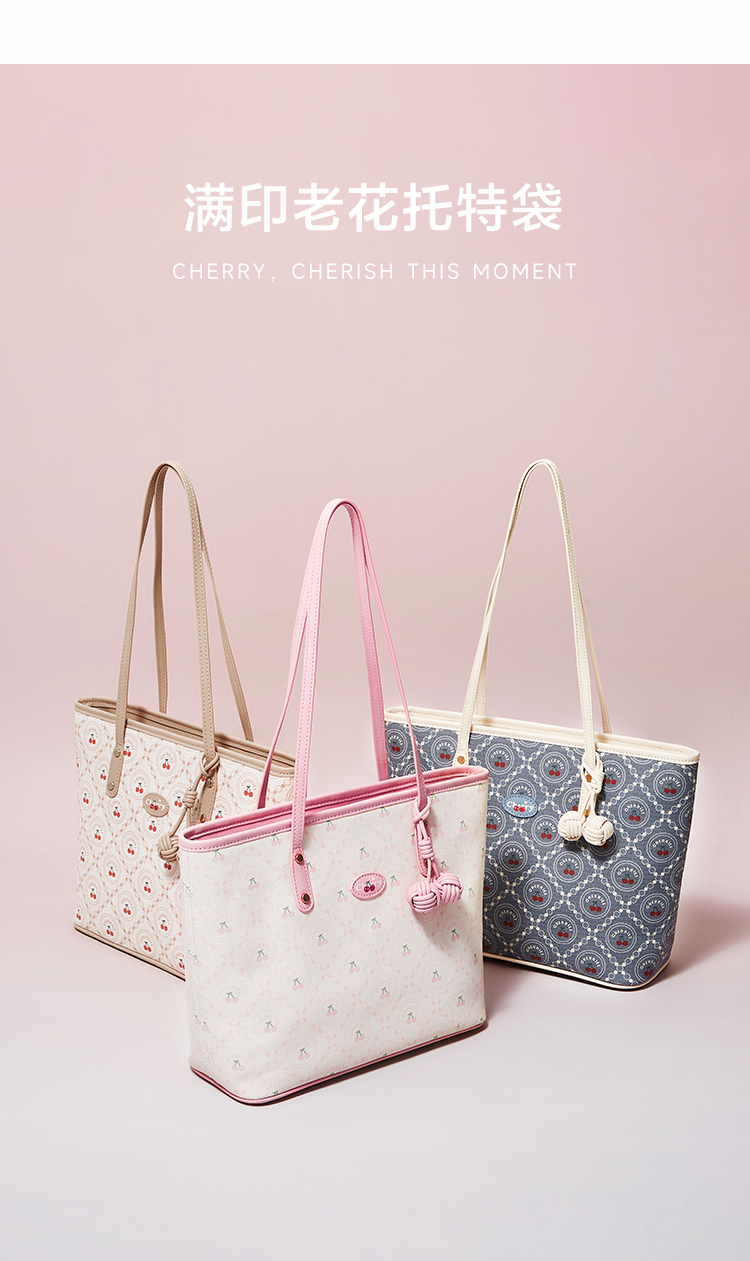 森马包包托特包女樱桃系列新款时尚满印老花单肩包大容量女包