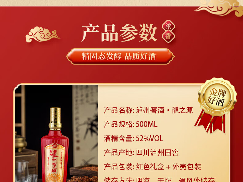 热卖中!!【中国 • 泸州老窖股份出品】泸州窖酒 • 龙之源 52°浓香型白酒 500ml*6瓶整箱