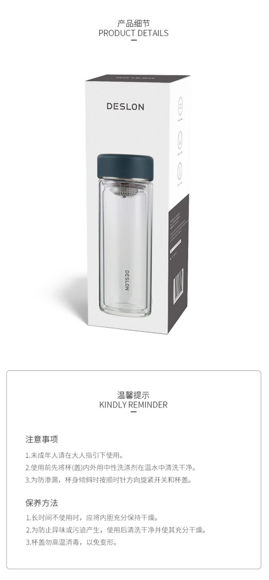 【德世朗DESLON玻璃杯】巨实用的玻璃杯 👉精选耐用耐温材质 👏手感舒适,容量合适办公、🌸居家、出门都好带,喝热水热茶都稳啦~