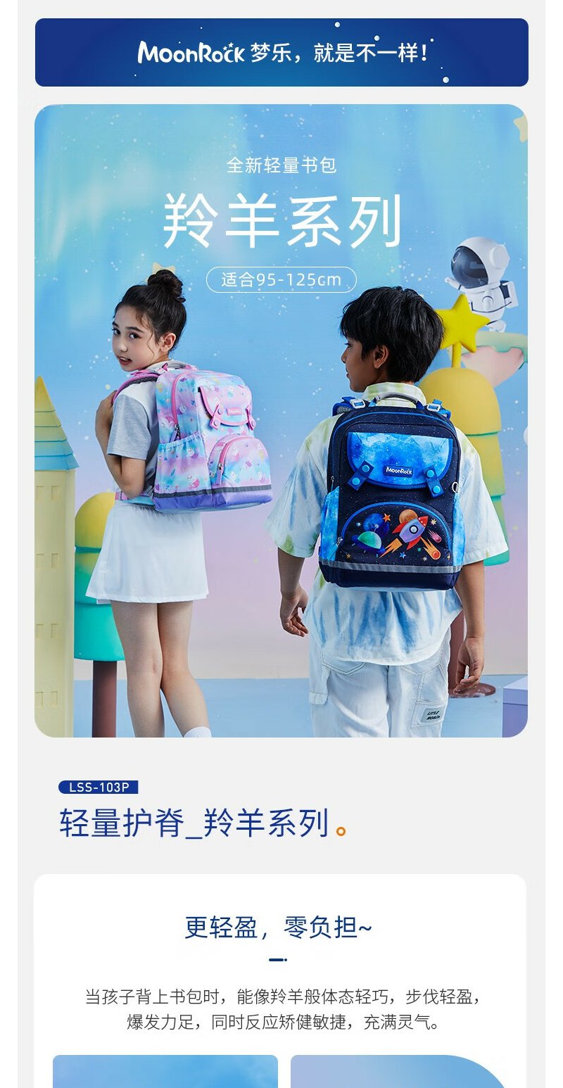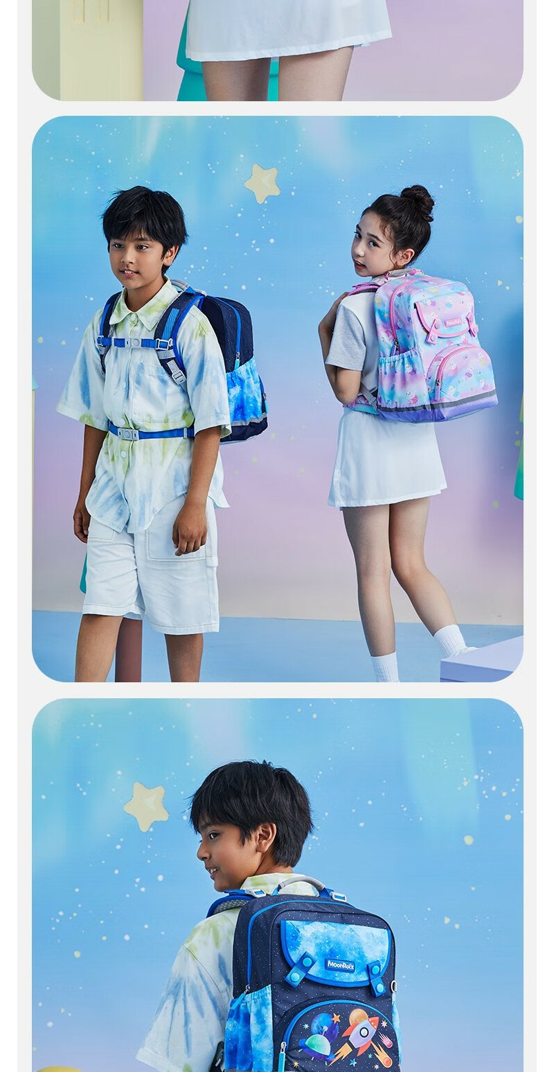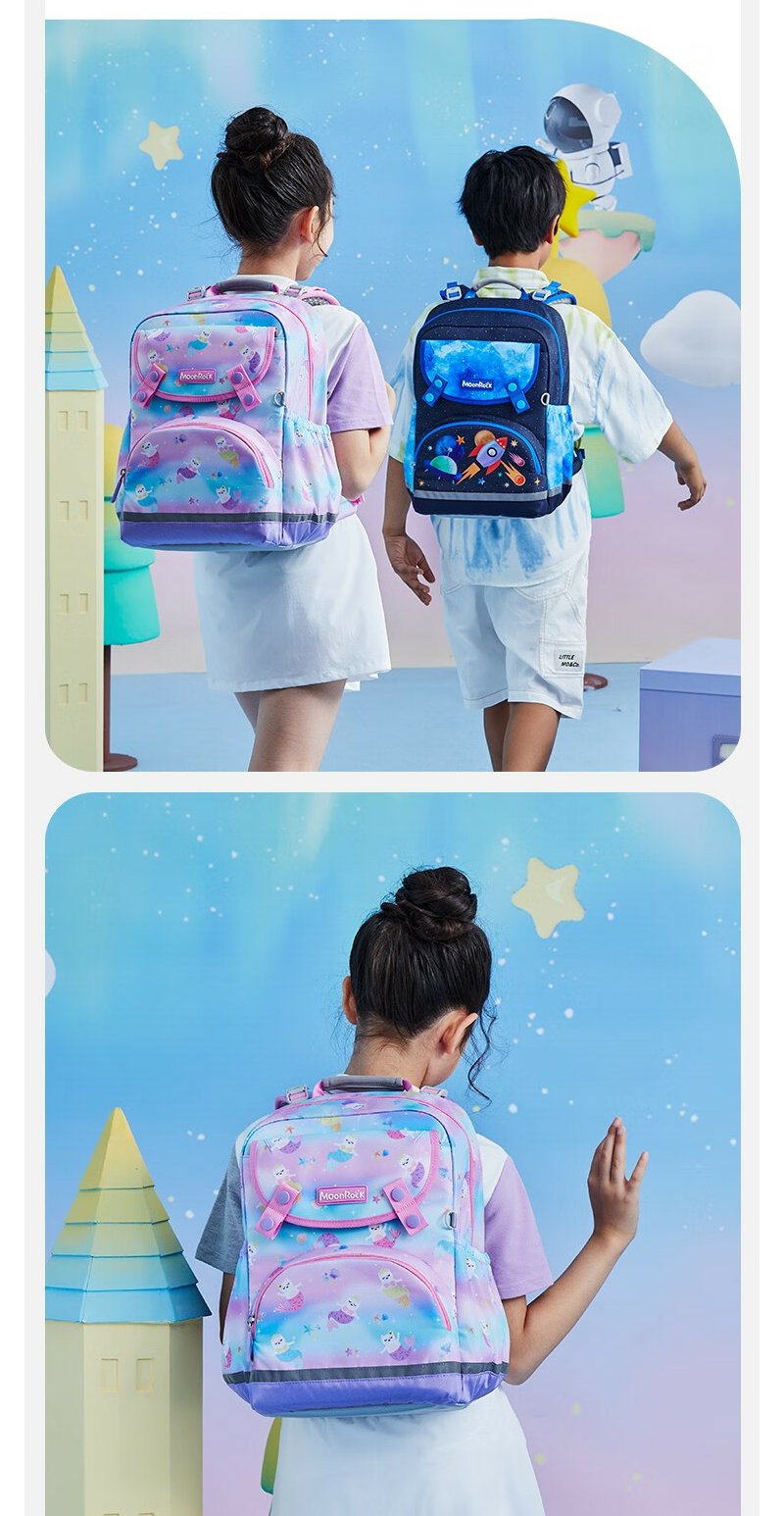 【护童】B座8F | 梦乐(MoonRock)2023新款儿童护脊书包小学生一二三年级男女轻便透气减负双肩背包 浅紫色-梦幻美人猫