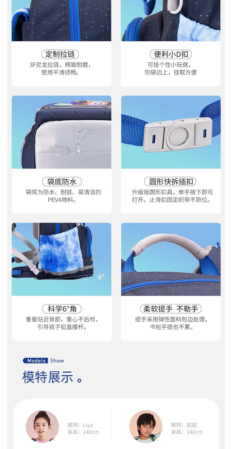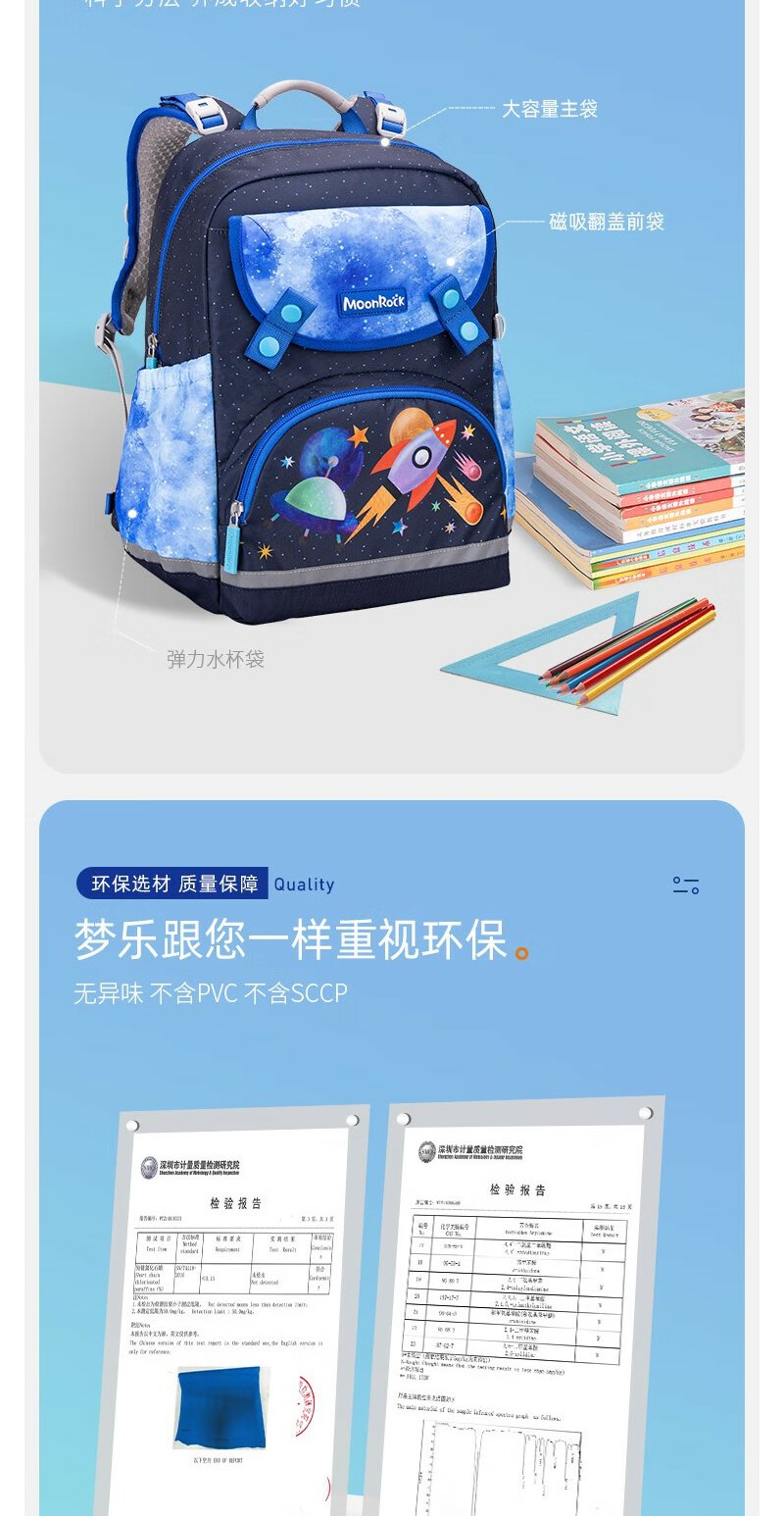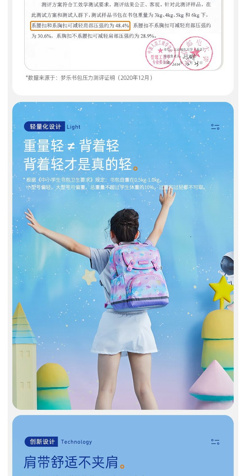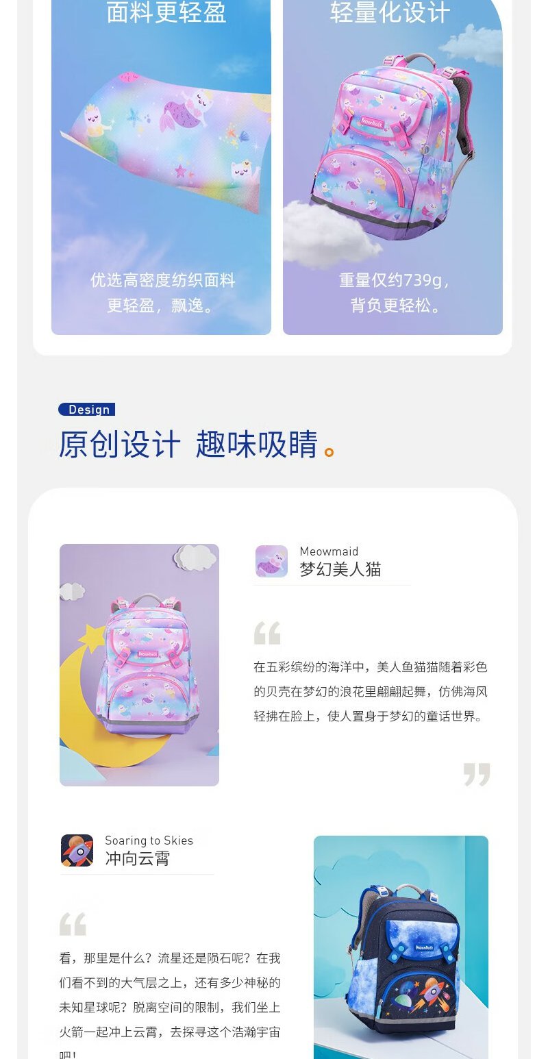 【护童】B座8F | 梦乐(MoonRock)2023新款儿童护脊书包小学生一二三年级男女轻便透气减负双肩背包 浅紫色-梦幻美人猫