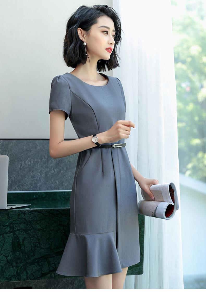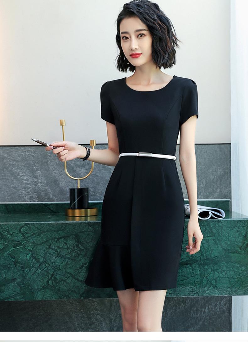 娜璐多 法式OL通勤短袖连衣裙高级感2023夏新款鱼尾拼接裙子百搭显瘦温柔