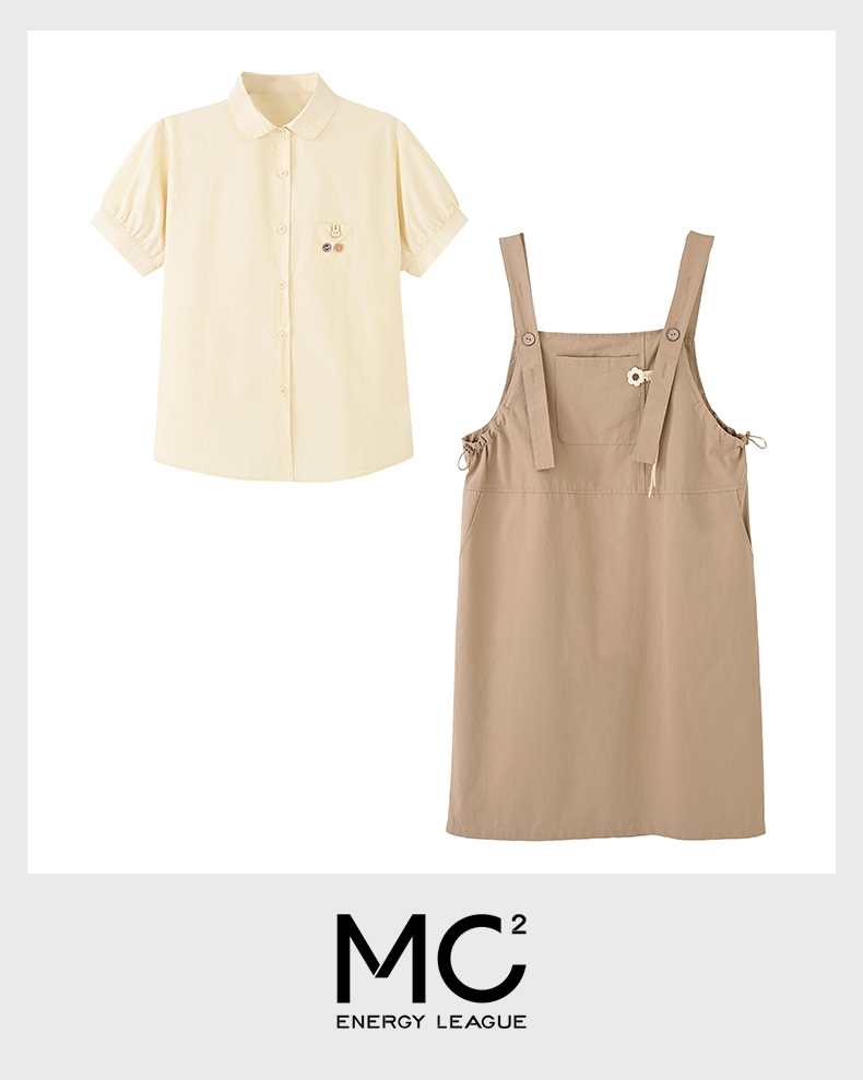 女装翻领衬衣配中长背带裙两件套-50S4221013